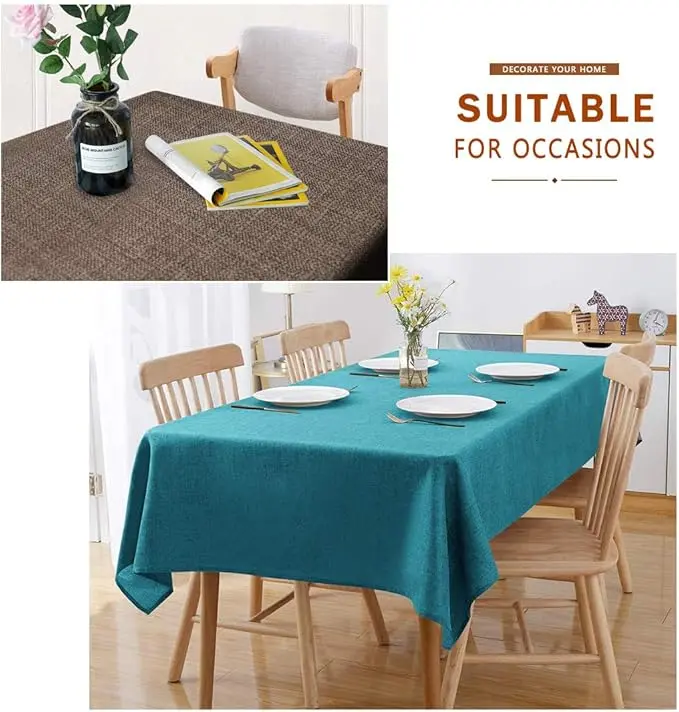 【Premium Fabric】The table Cloths are crafted from high quality faux linen fabric, no chemical smells. Featuring good texture and function, our wrinkle resistant tablecloths are perfect to protect and embellish your table