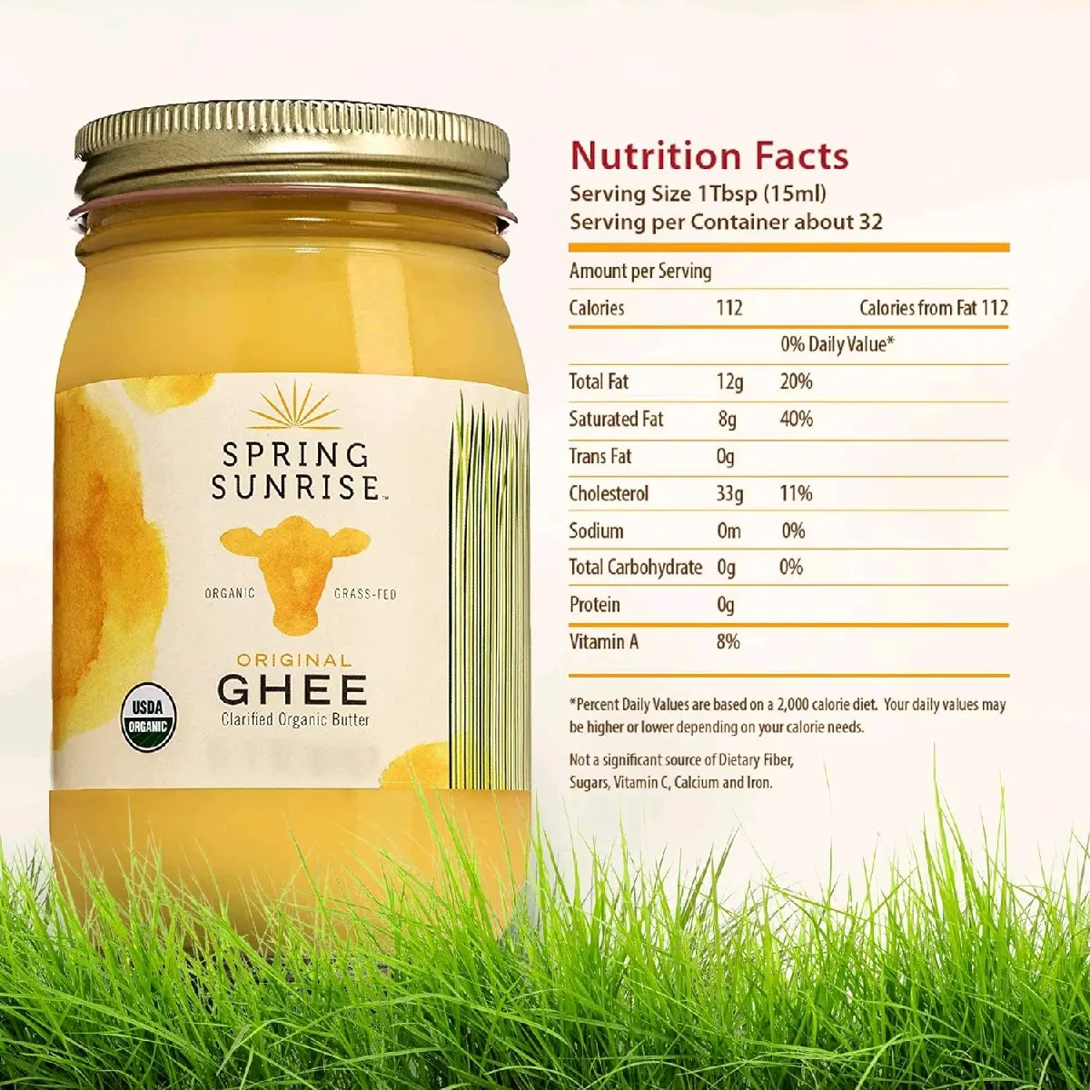 Introducing the Spring Sunrise Organic Grass Fed Ghee Butter, a USDA Certified Organic product that is perfect for those who follow a Paleo or Keto diet. This clarified butter is made from grass-fed cows, which means that it is healthier for the environment and the animals. It is also free from GMOs, gluten, and casein, making it a great choice for those with gluten and casein sensitivities.