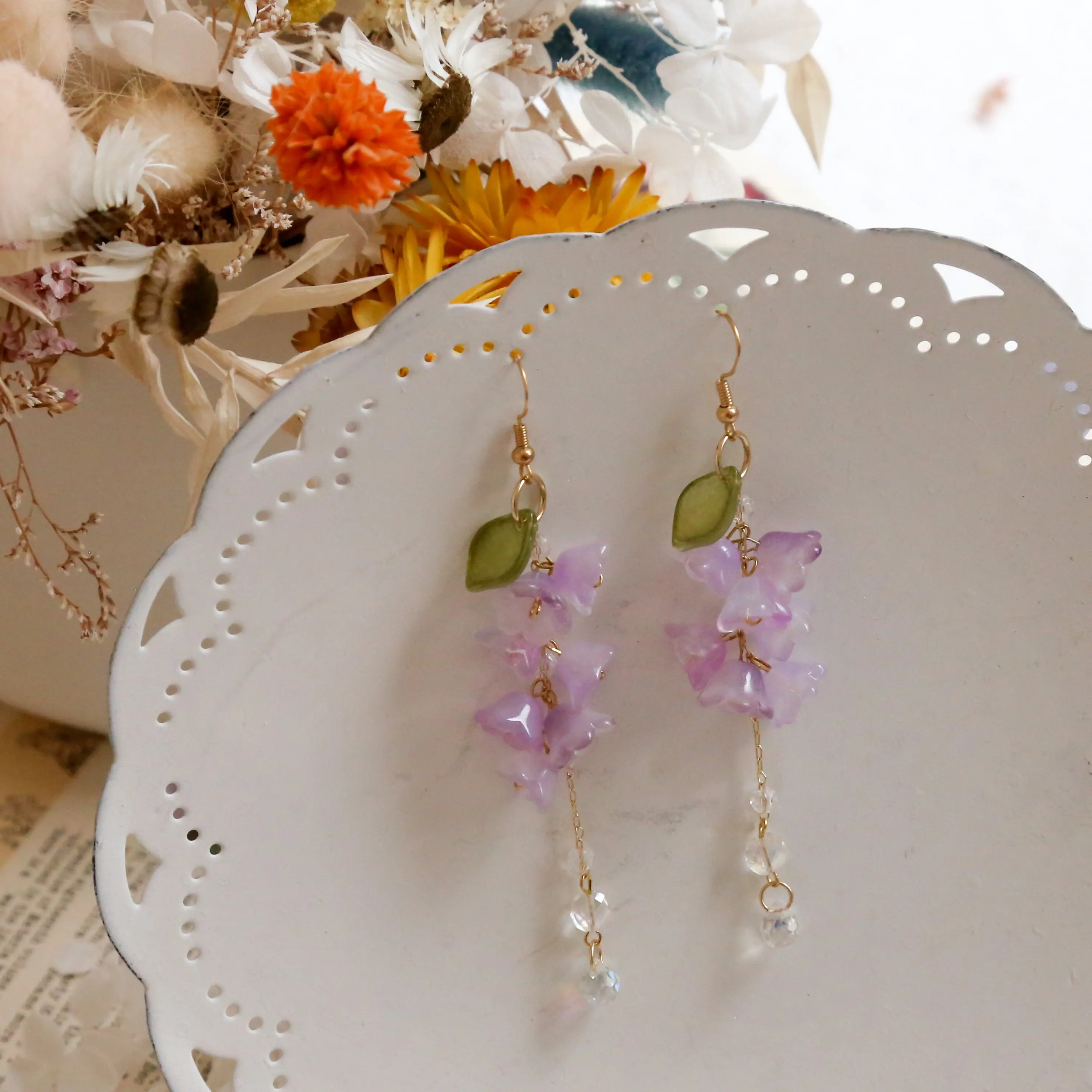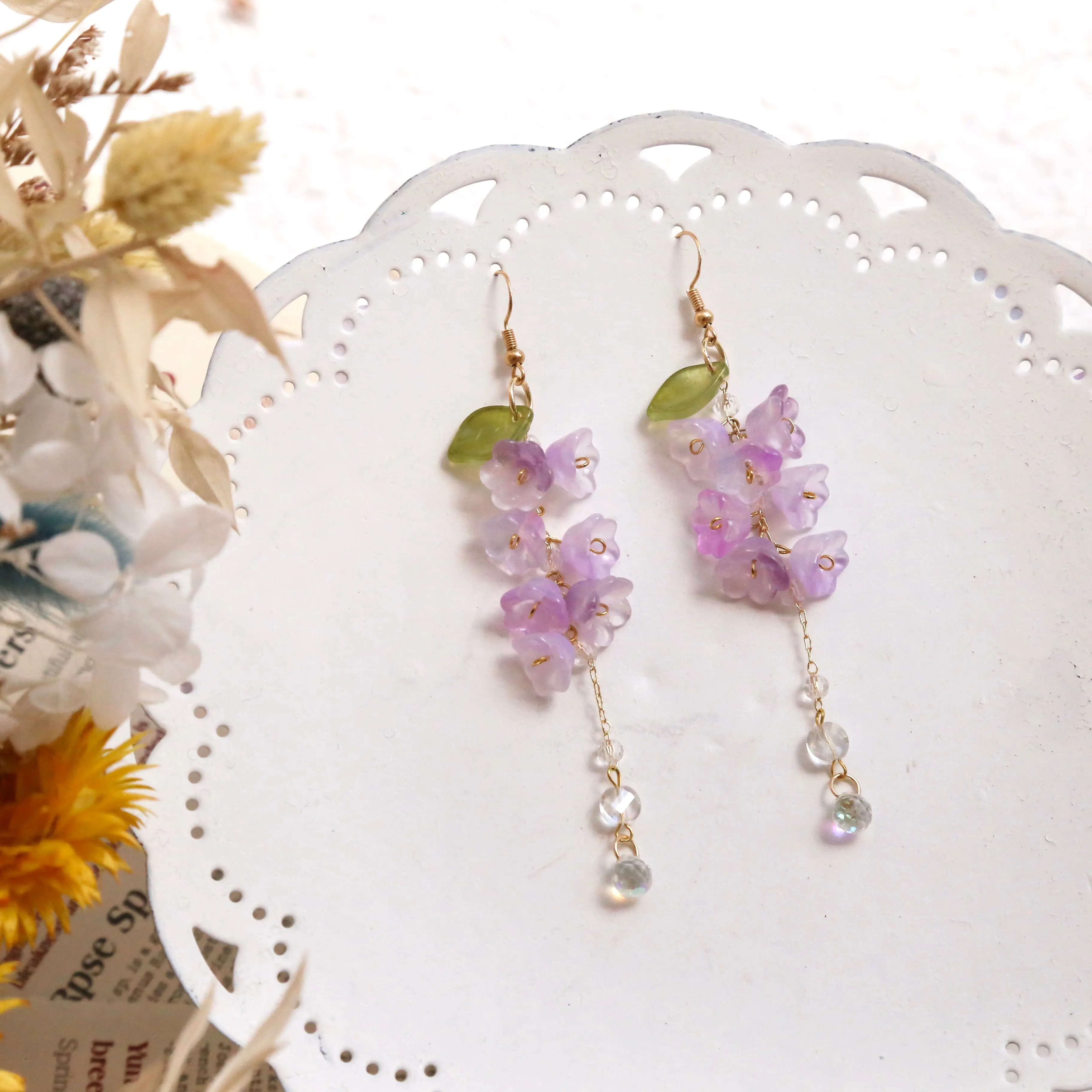 Meet our charming Wisteria Earrings, a delightful favorite among our customers! With over 2,000 pairs sold and countless glowing reviews, these earrings beautifully capture the essence of wisteria blooms. Handcrafted with love, each pair showcases intricate details that bring a touch of nature's elegance to your look.