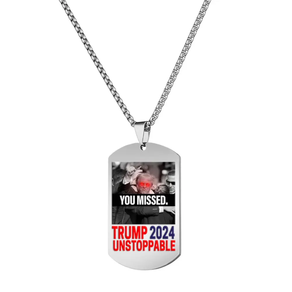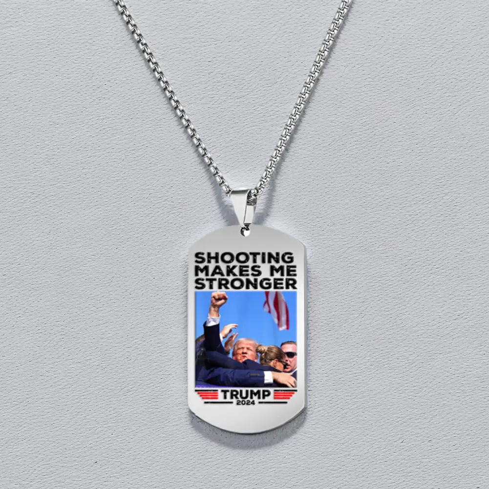 Never Stop Fighting Trump 2024 Necklace Shooting Makes Me Stronger US Flag Picture Glass Dome Pendant Necklace