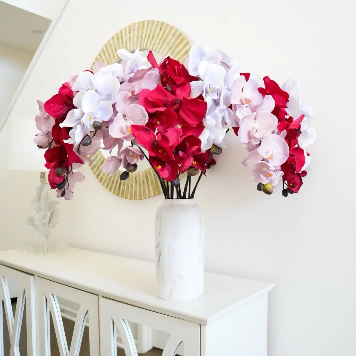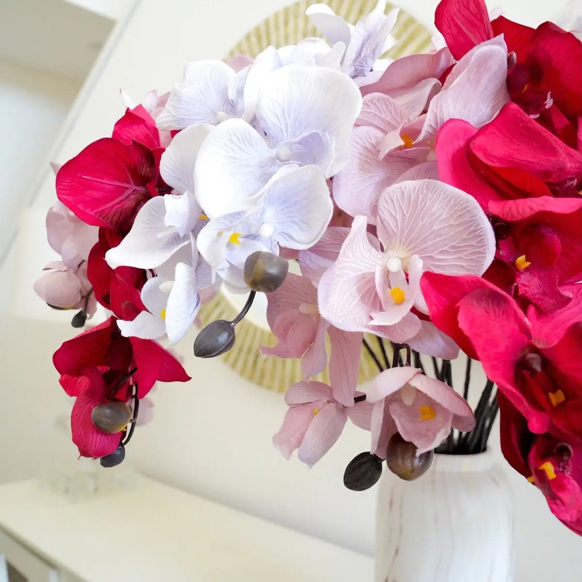 3 colors Artificial Orchid Stem | Faux Orchid | Artificial Butterfly Orchid Flowers | Gift | Home Decor | Wedding Flowers | Red Pink Blue