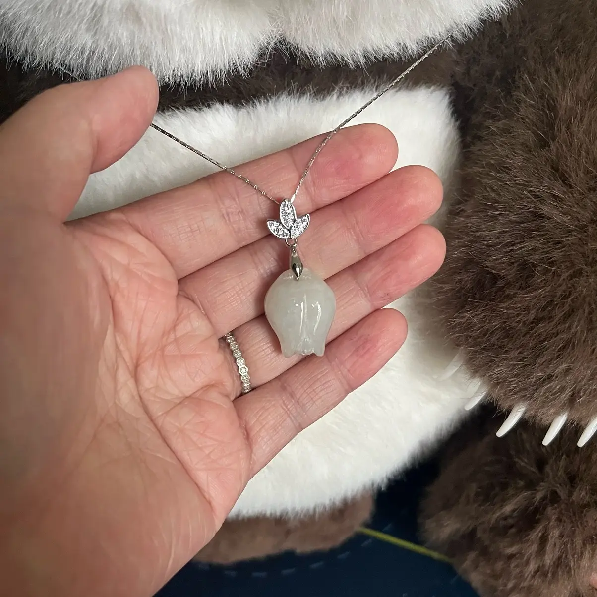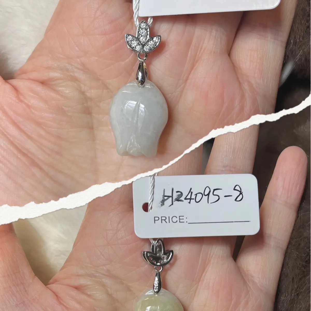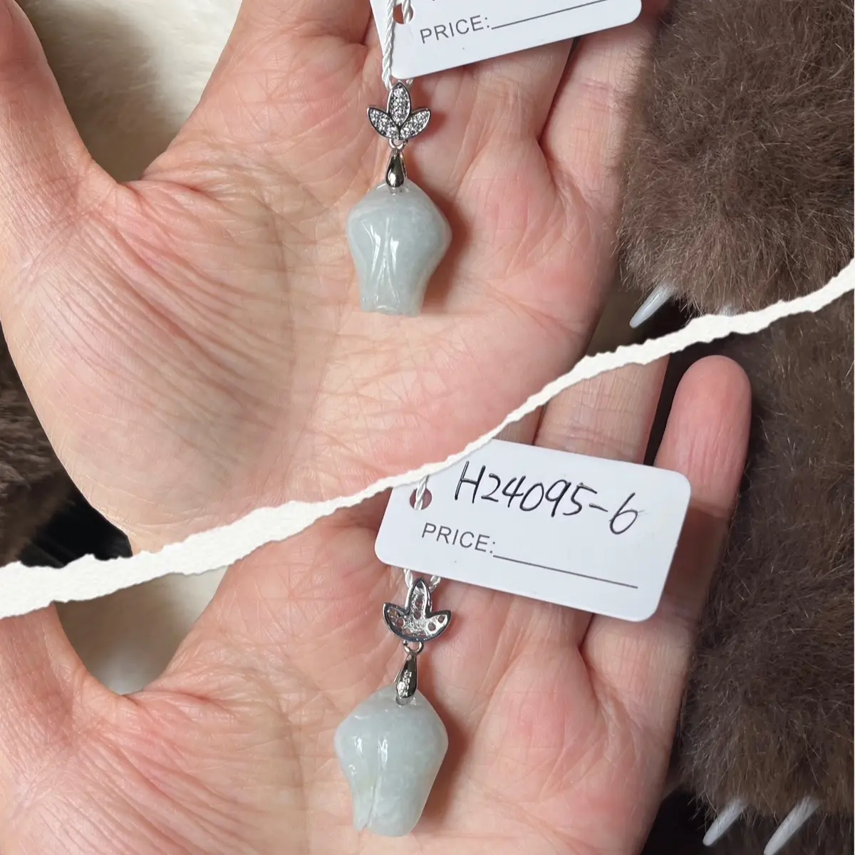 F24095 Untreated Burmese Jadeite Grade A Jade Flower - Necklace Pendant