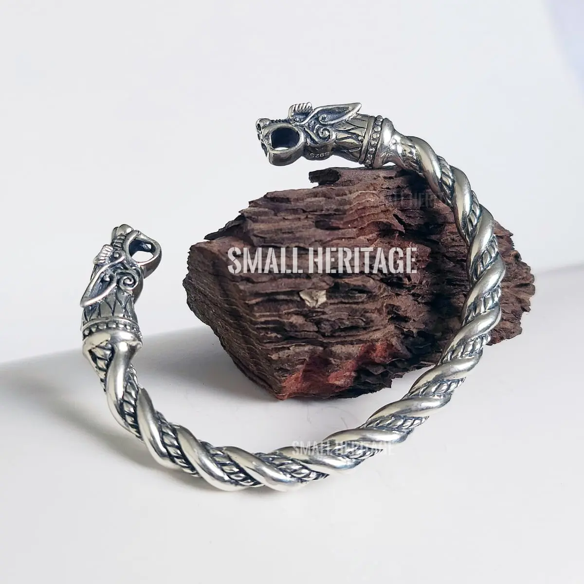 925 Sterling Silver Viking Bracelet Norse Cuff Medieval Style Arm Ring For Men