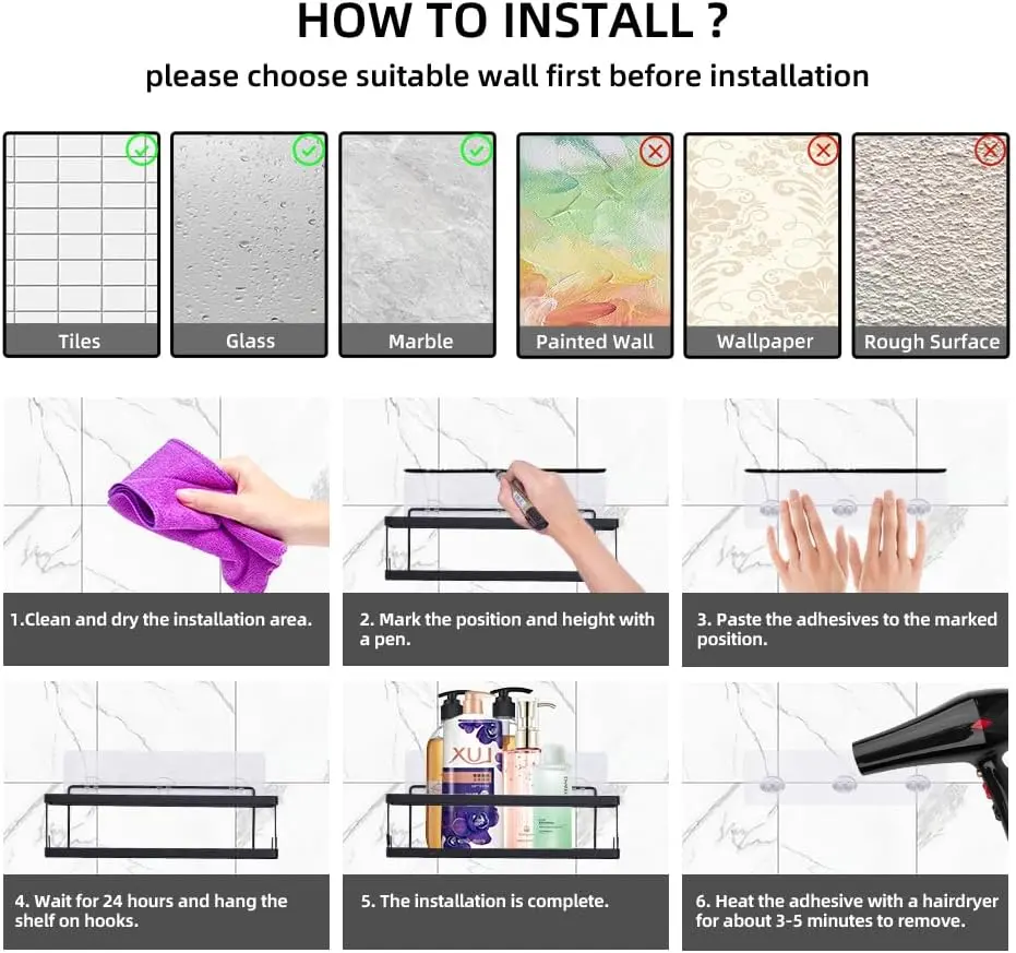 ·Large Capacity: Each shelf has ample space to hold all your shower or bathtub essentials.