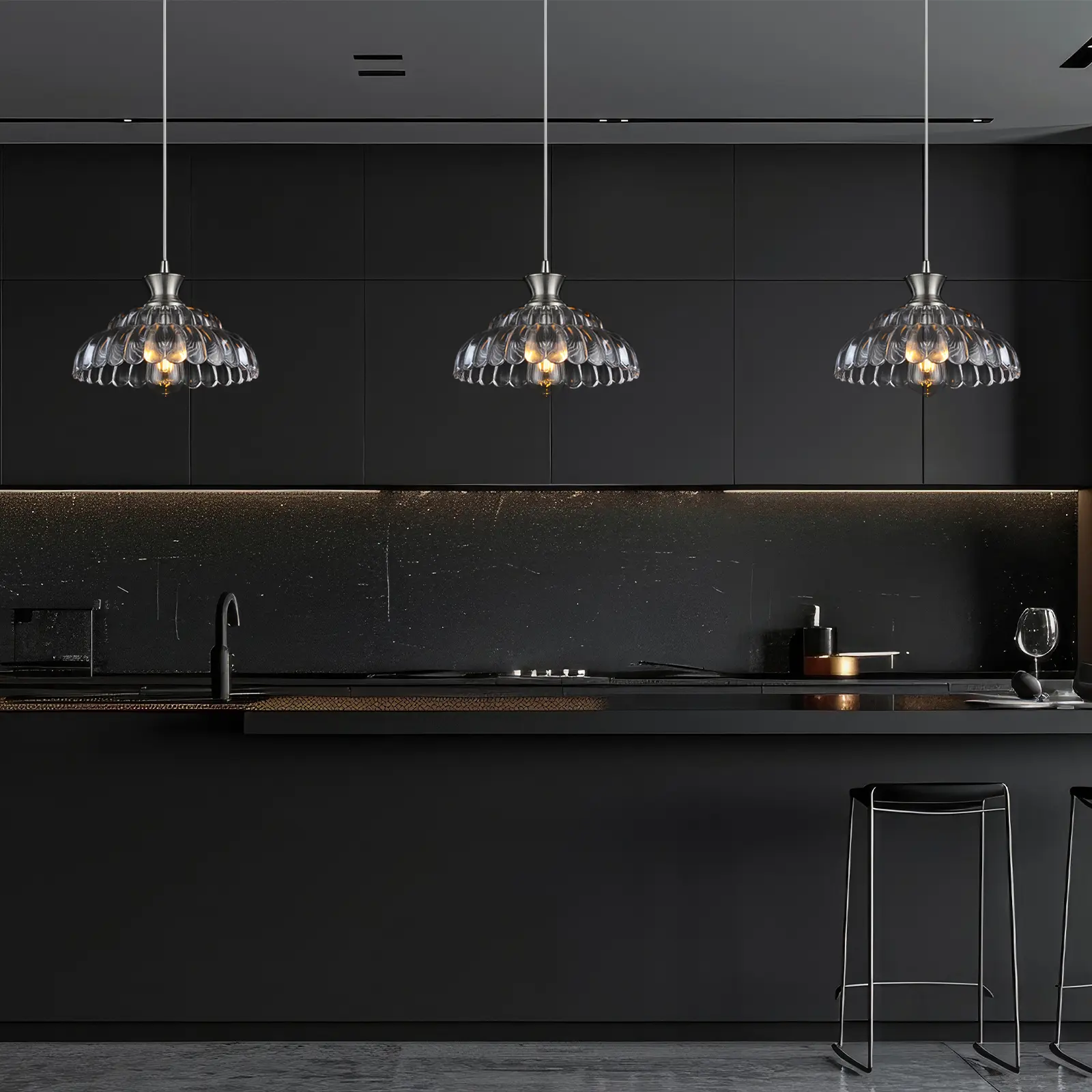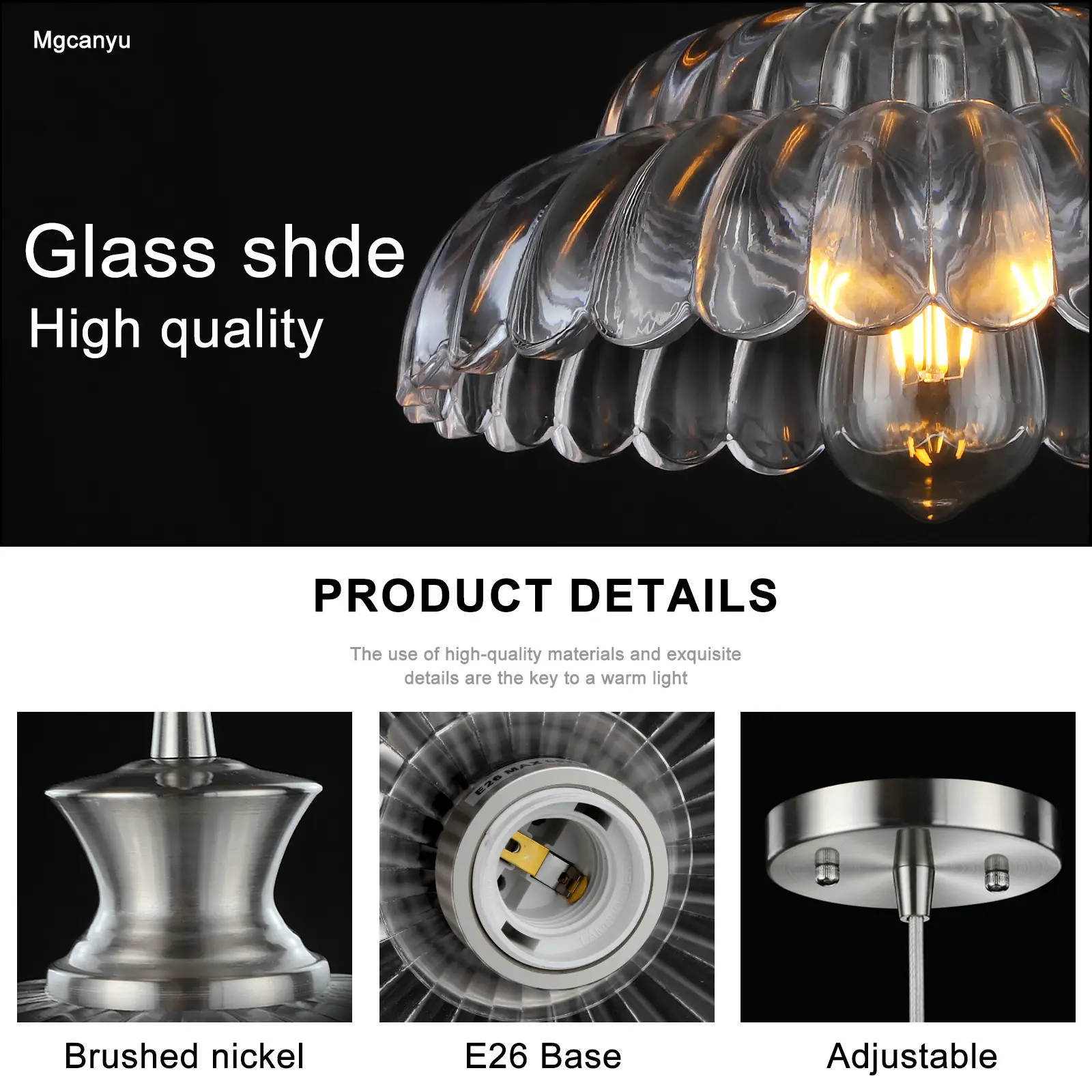 ·【High Quality Glass Light Fixtures】The glass flower pendant lights for kitchen island is made of thickened glass and metal fittings treated with brushed finish, anti-rust and durable. And using UL-certified wires is safer.