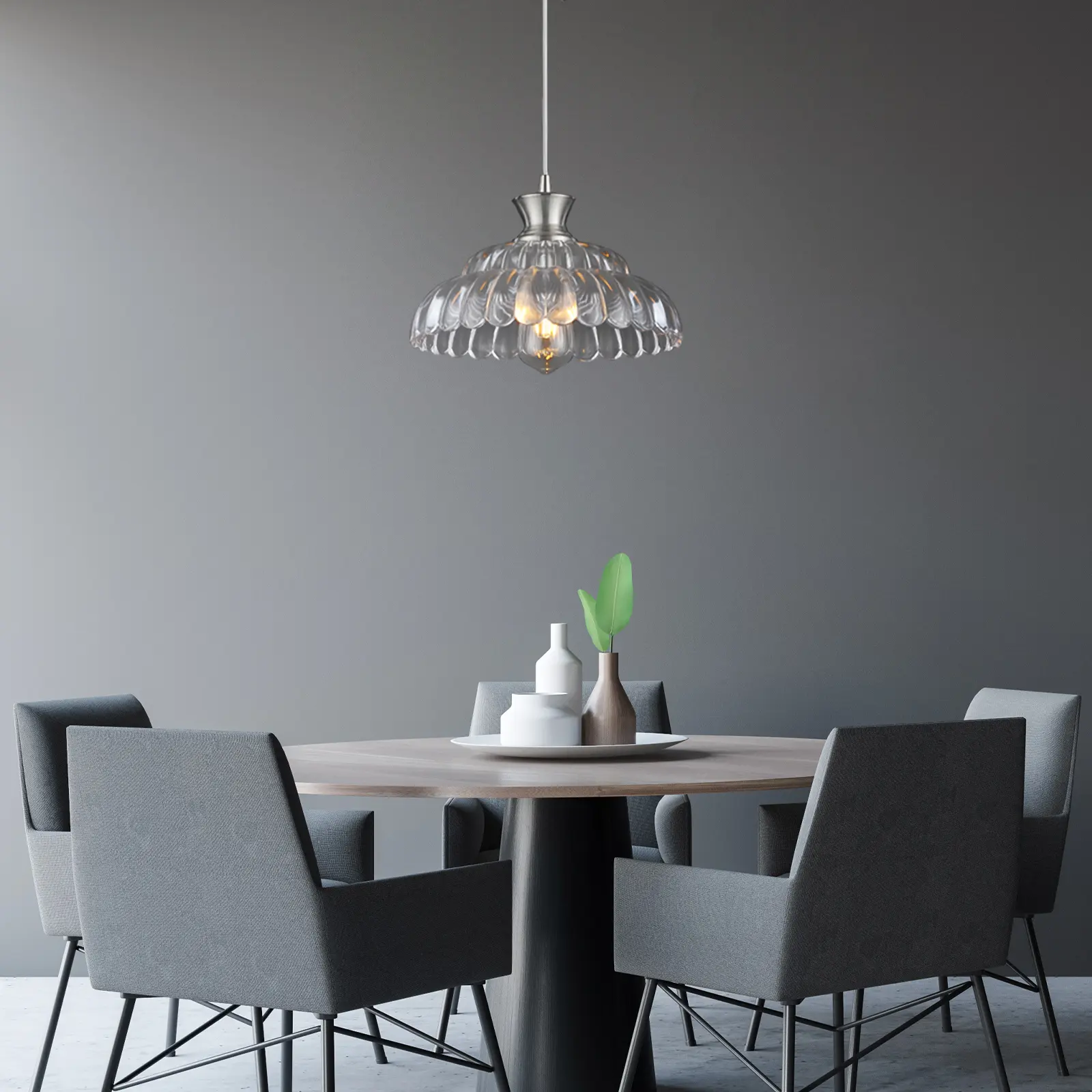 Modern Glass Pendant Lights Kitchen Island, 11.8" Glass Light Fixtures Brushed Chrome Flower Vintage Lighting Glass Ceiling Chandelier for Dining Living Room Restaurant Bedroom Foyer Entryway