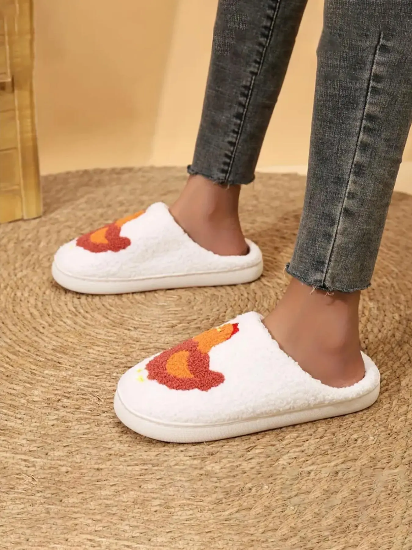 【Unique Cartoon Pattern】: Featuring an adorable cartoon chicken design, these slippers add a playful touch to your indoor wear.