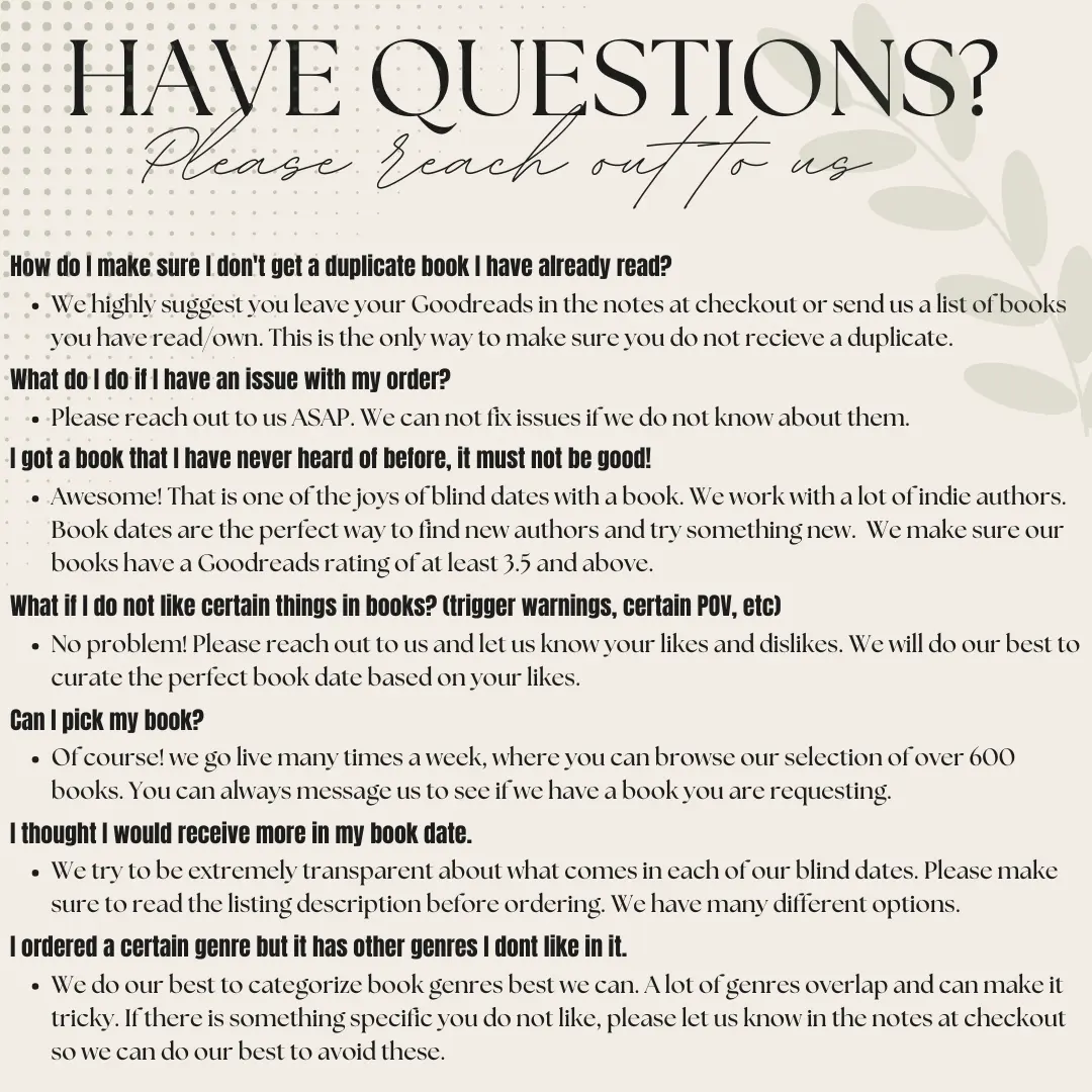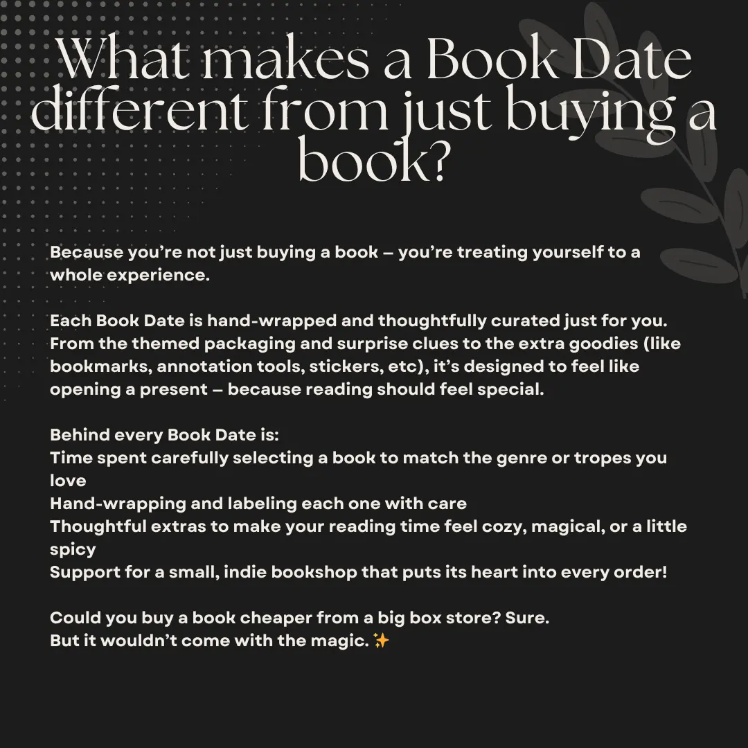 Absolutely loved my blind date with a book!! The book I got was Grave Matter. I was so anxious about opening it but was beyond excited. Everything is great quality. I can’t wait for my next purchase!