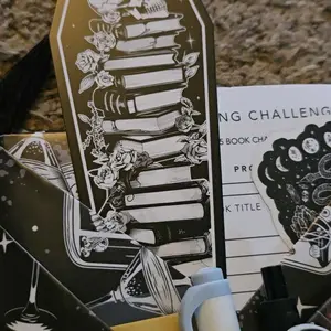 This is so awesome and arrived just in time for Halloween!! It had an adorable pin and pens. A really nice book mark and was a book I had on my TBR!!! I will deff be getting more from her. It also came with some cool stickers
