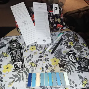 Loved all of the lil spooky "extras" stuffed in the wrapping. Can't wait to have self care Sunday with my spooky blind date with a book!! =)