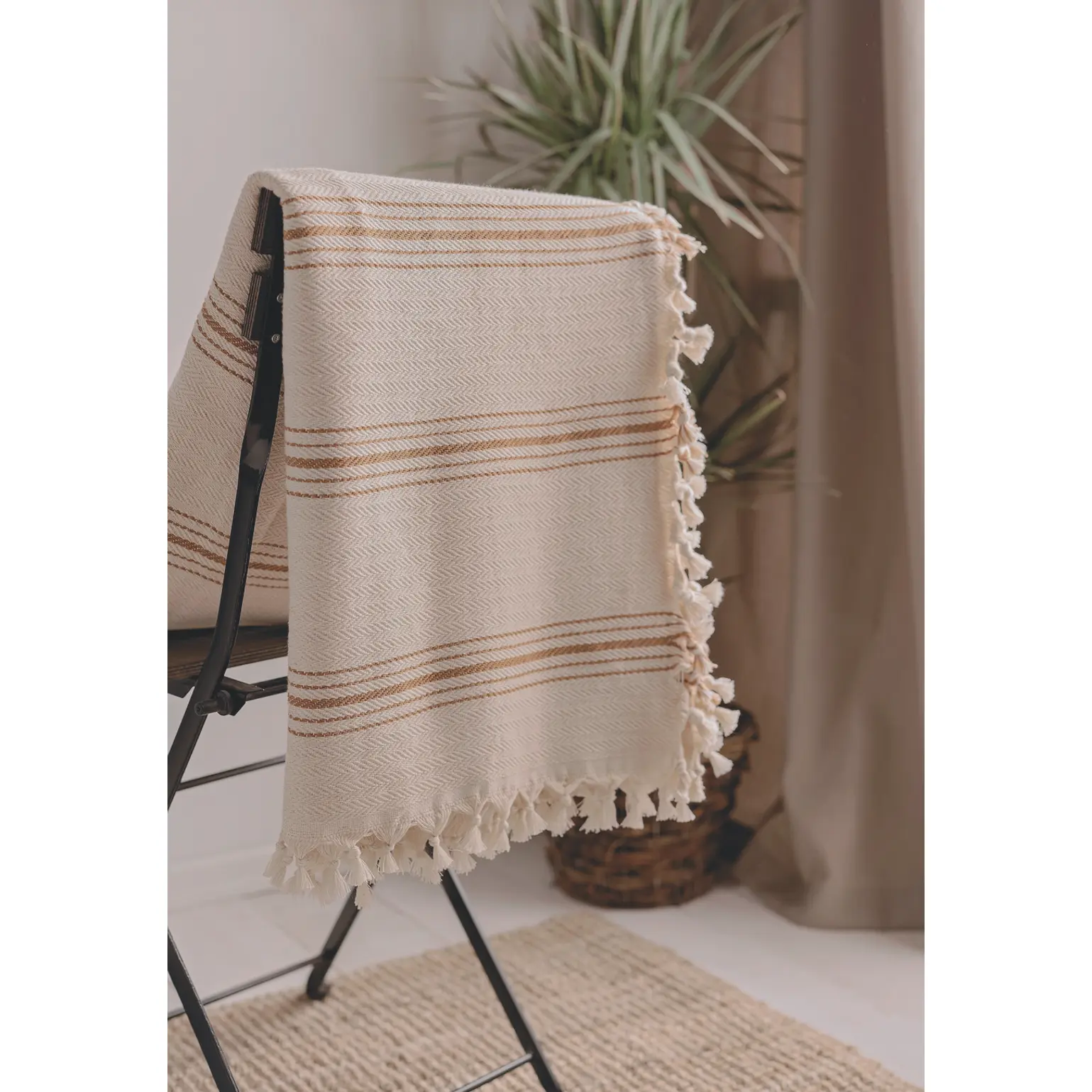 This soft and cozy throw blanket, is the perfect addition to any couch or bedspread. The 100% cotton material and tassels give it a boho touch, making it a great choice for adding a decorative touch to your living room or bedroom. The blanket is ideal for covering a queen-sized bed or a king-sized mattress, or simply draped over a couch, as it strikes the perfect balance of softness and substance. The breathability of Turkish organic cotton makes it suitable for use in all seasons. It will keep you comfortable in the summer and provide warmth in the winter.