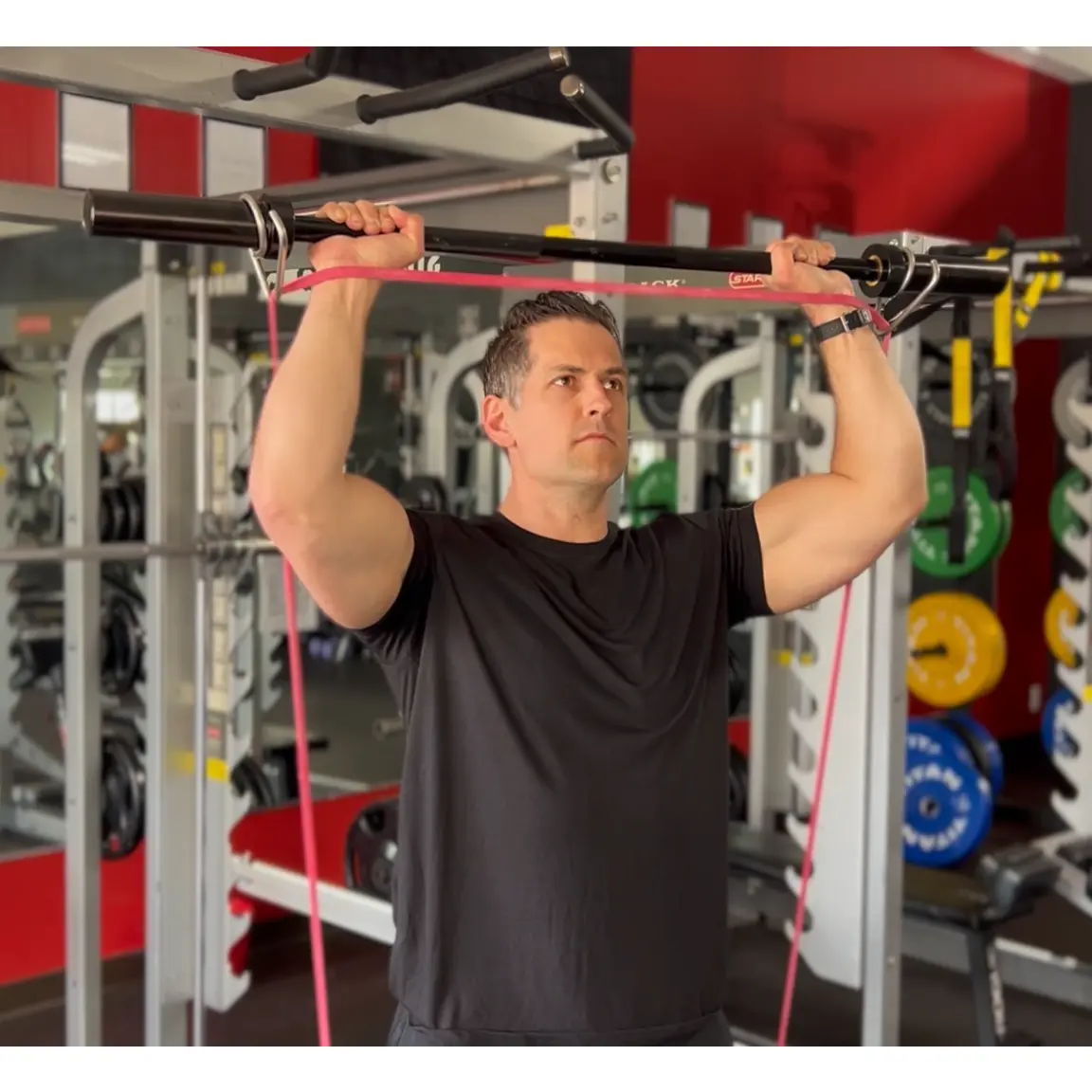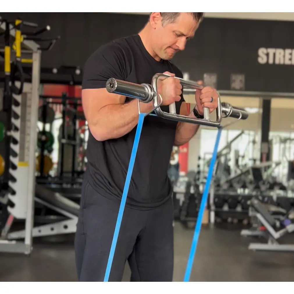 Slide the Collar Hooks on any bar, then attach bands for a stand-alone resistance band exercise or add weight plates for the ultimate hybrid resistance training experience