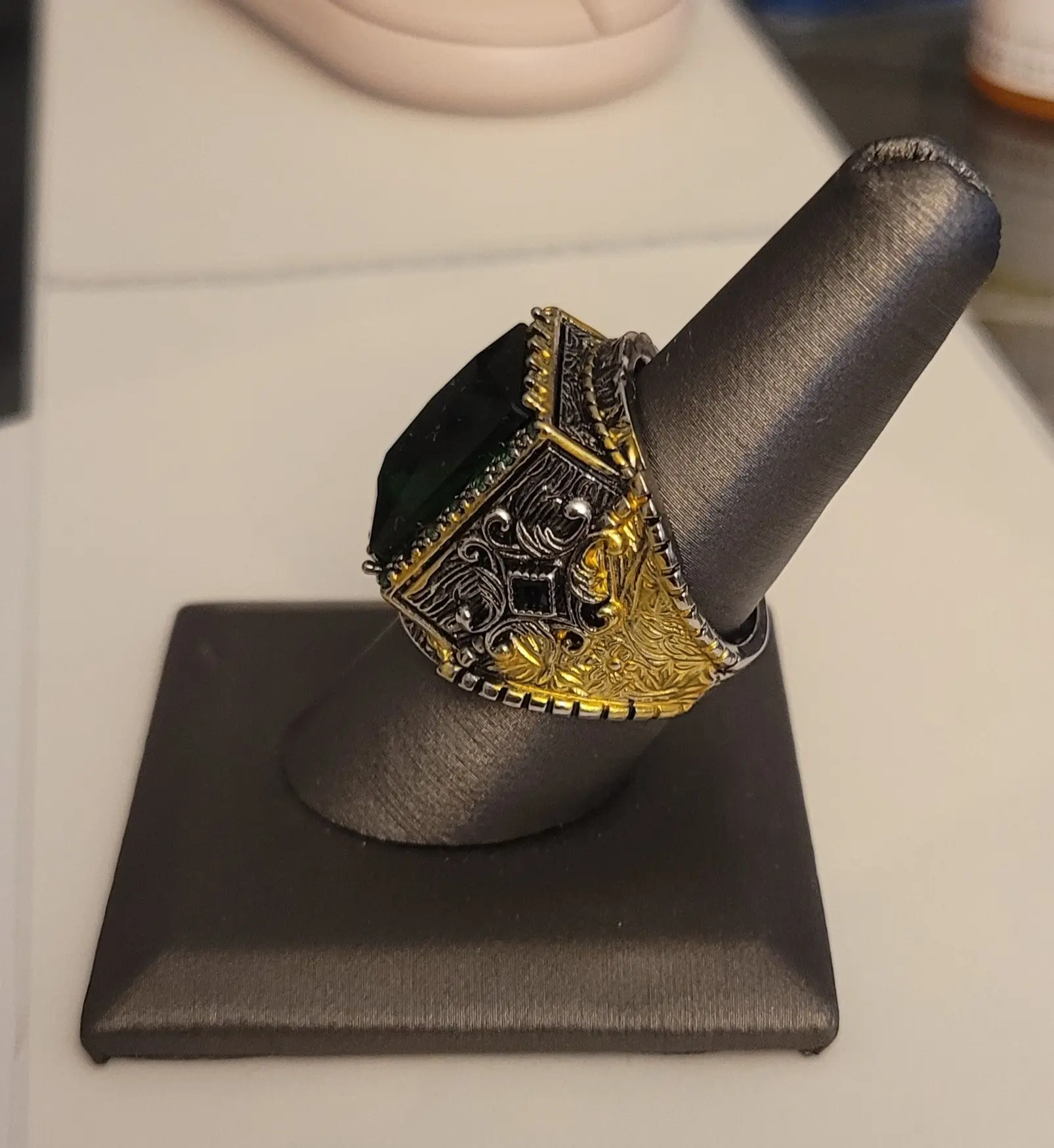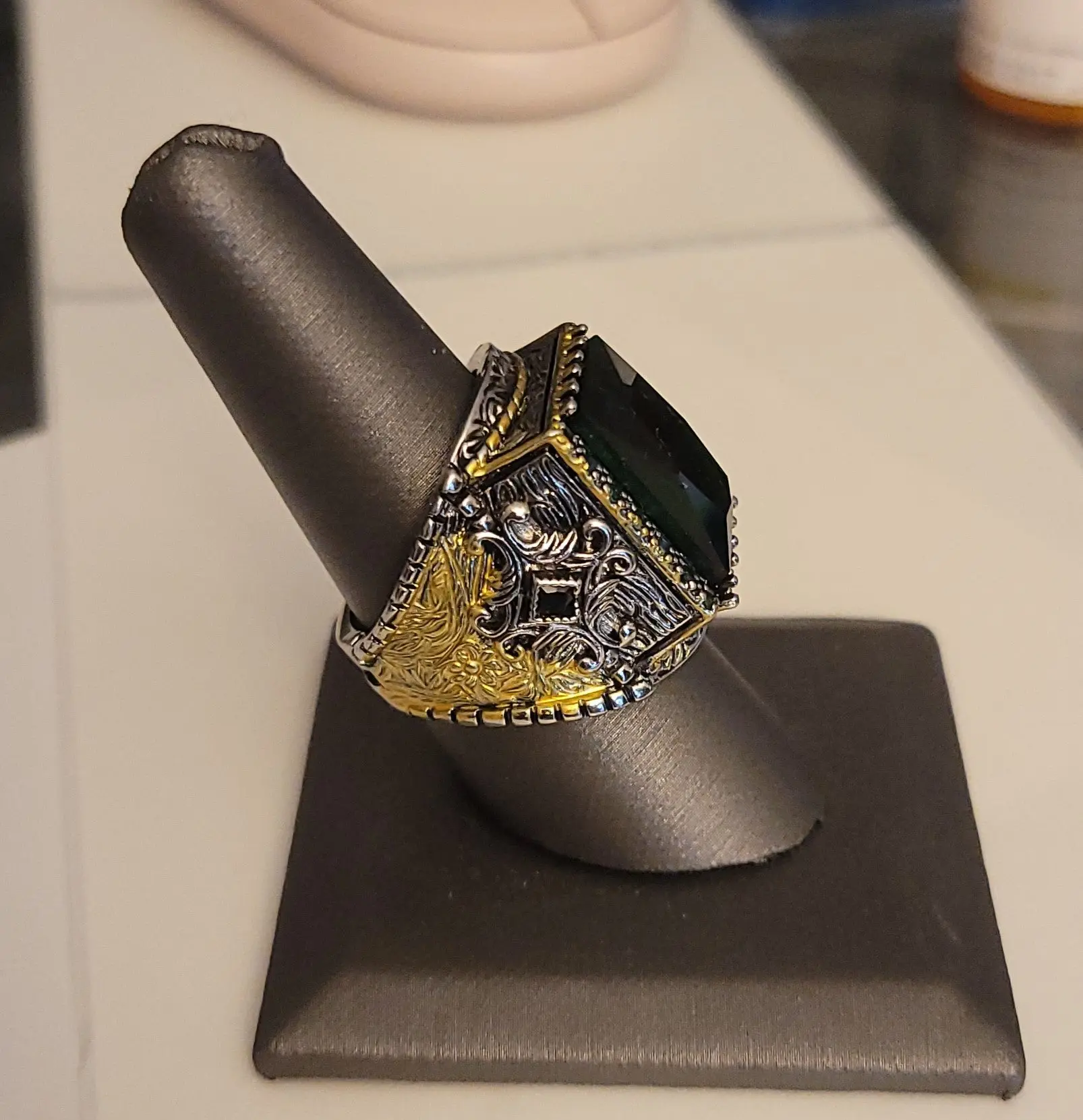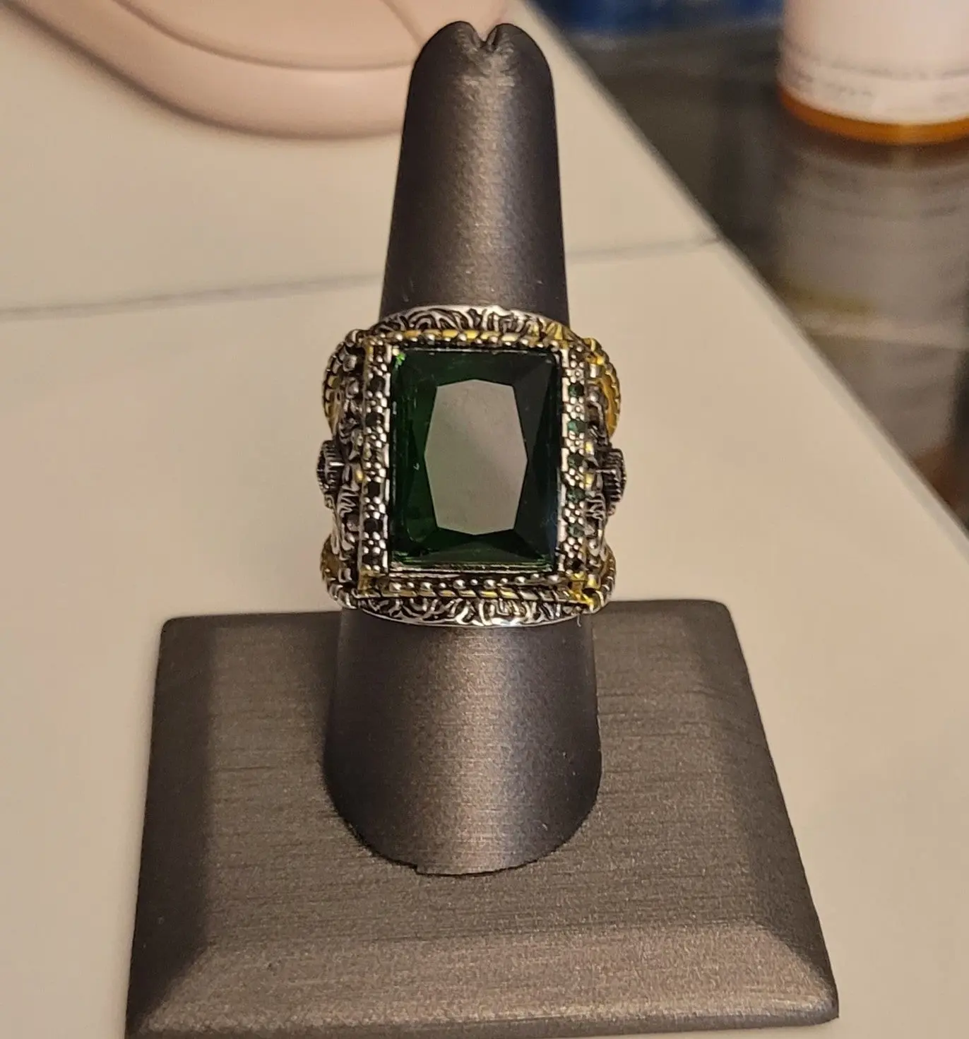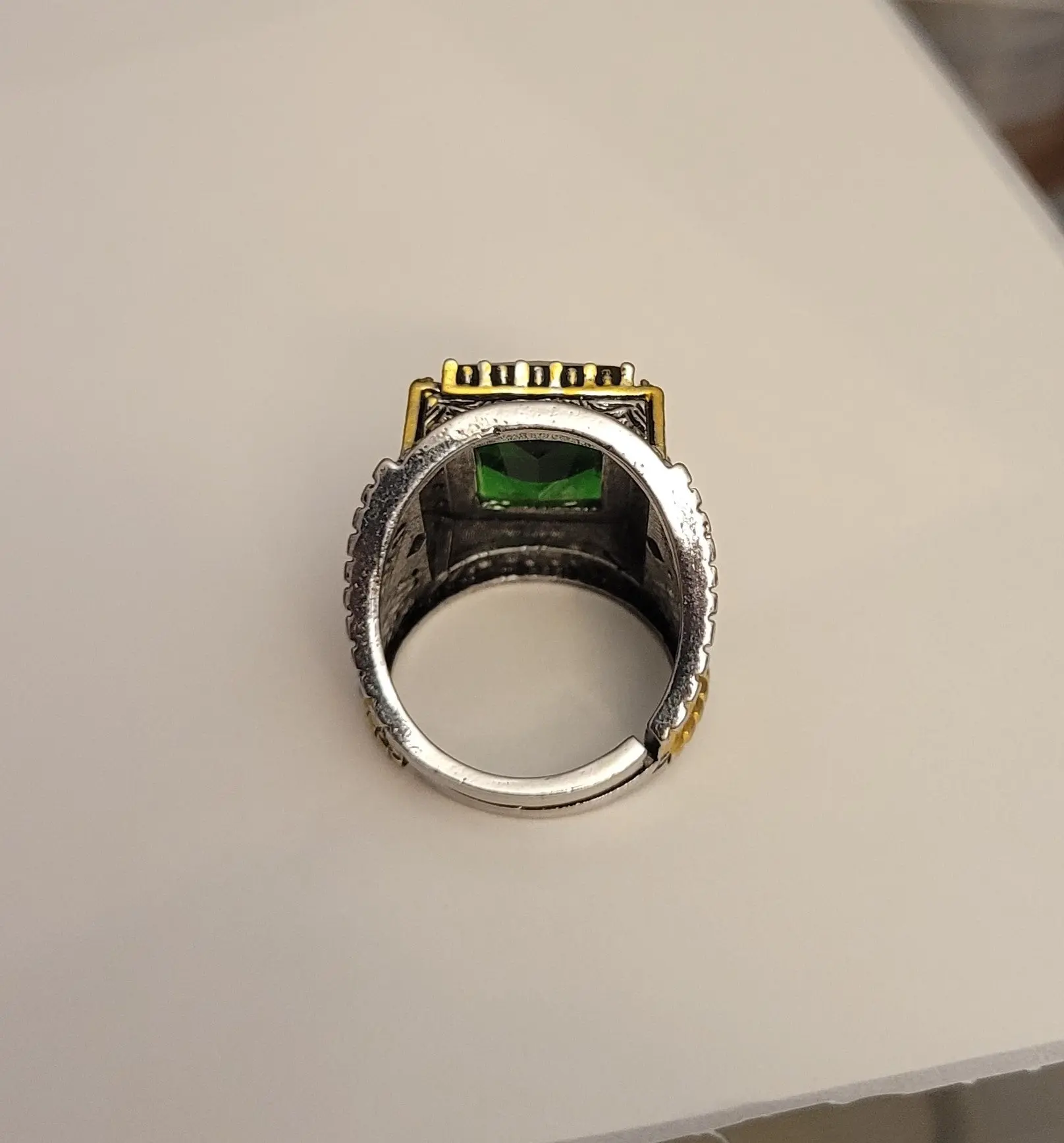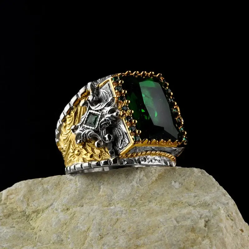 Men's Handmade Green Emerald 925 Sterling Silver Open Ring Adjustable Rings Statement Rings