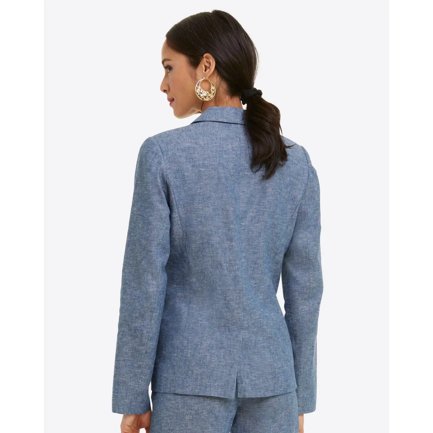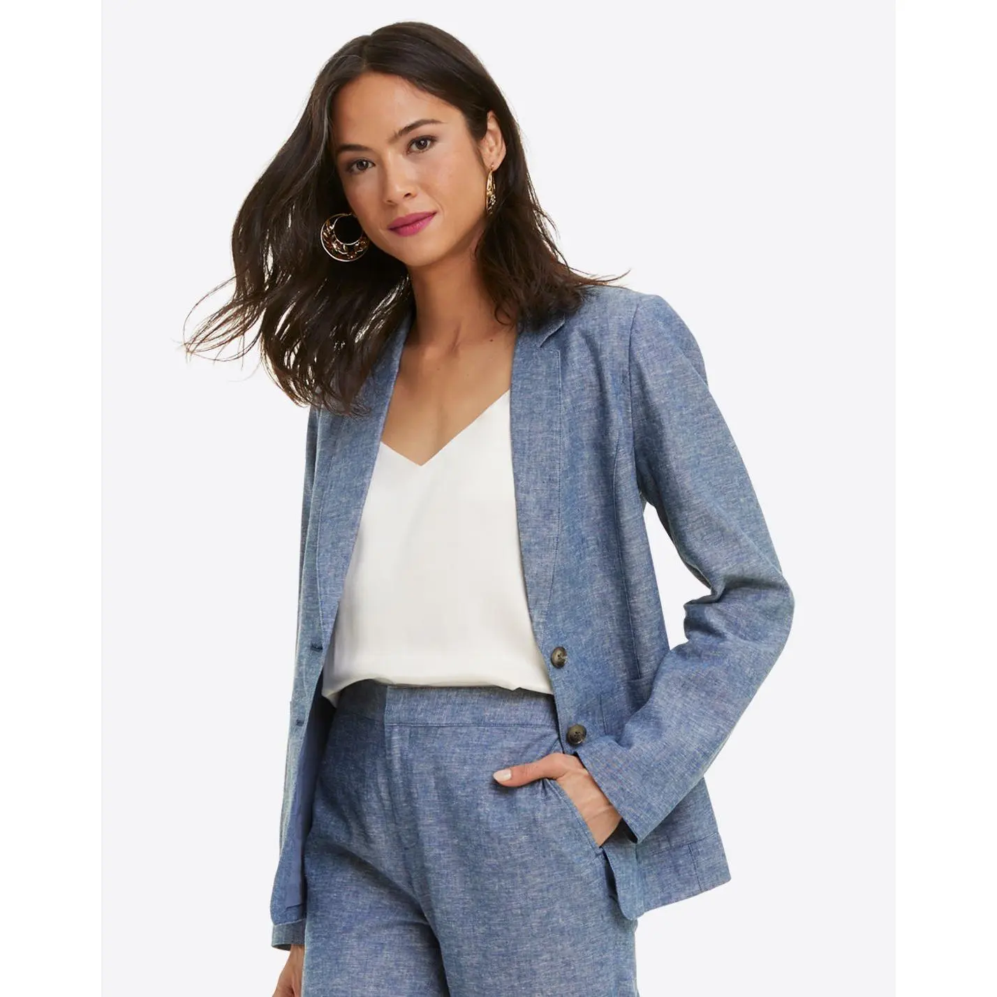 Meet the Chambray Blazer. Chic and sophisticated this blazer is a great addition to your closet. You can dress this up or down and even pair it with our Chambray Pants for a full Chambray look!