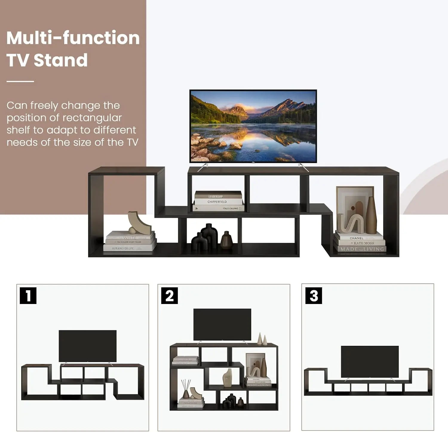·【Adjustable & Lengh Extendable】This TV console stand with storage has 2 adjustable shelves, which can be combined freely for at least 3 forms. This TV table also fits corner well and saves space. You can change the position of the stand according to your need. Be creative and choose the best configuration for this stylish and functional cabinet!