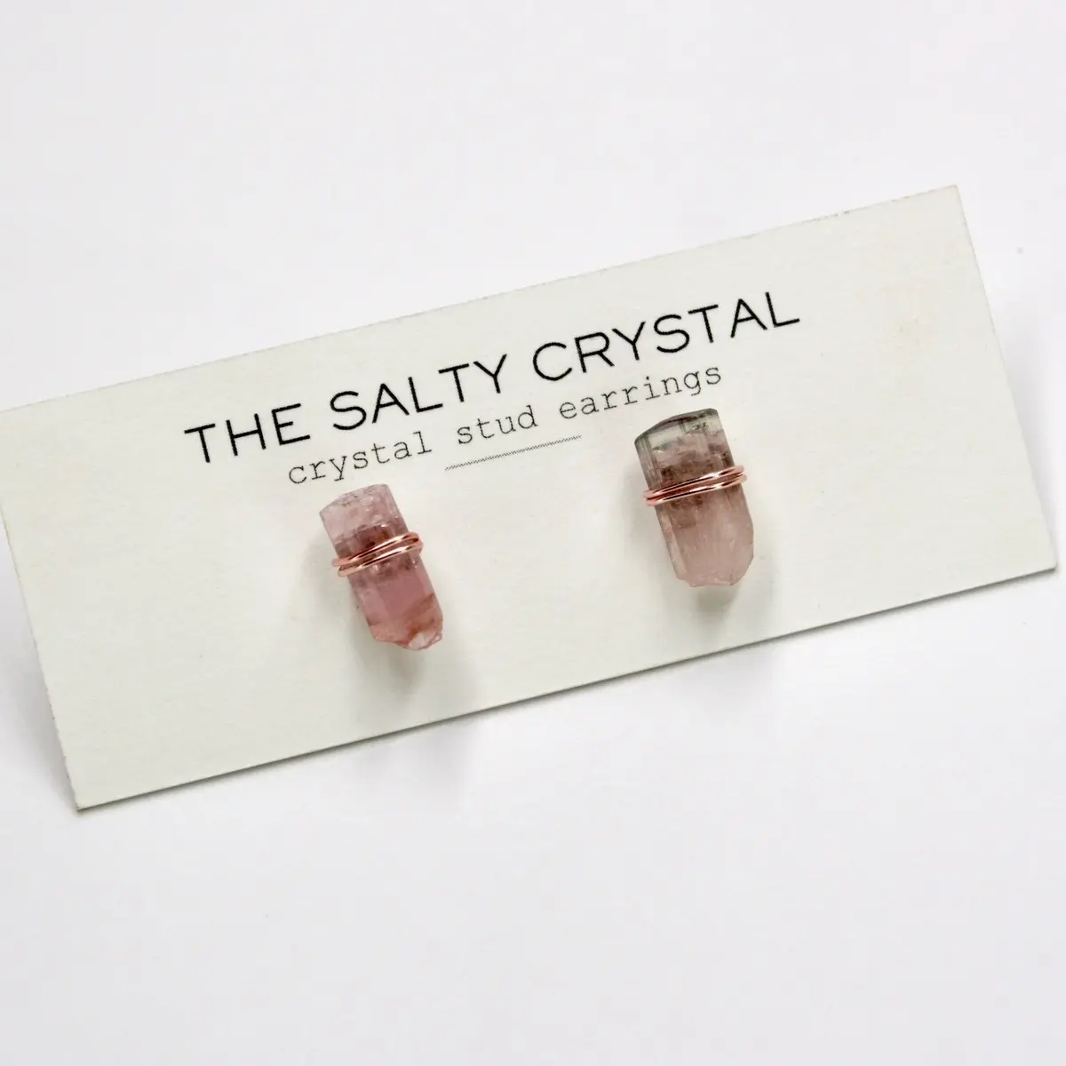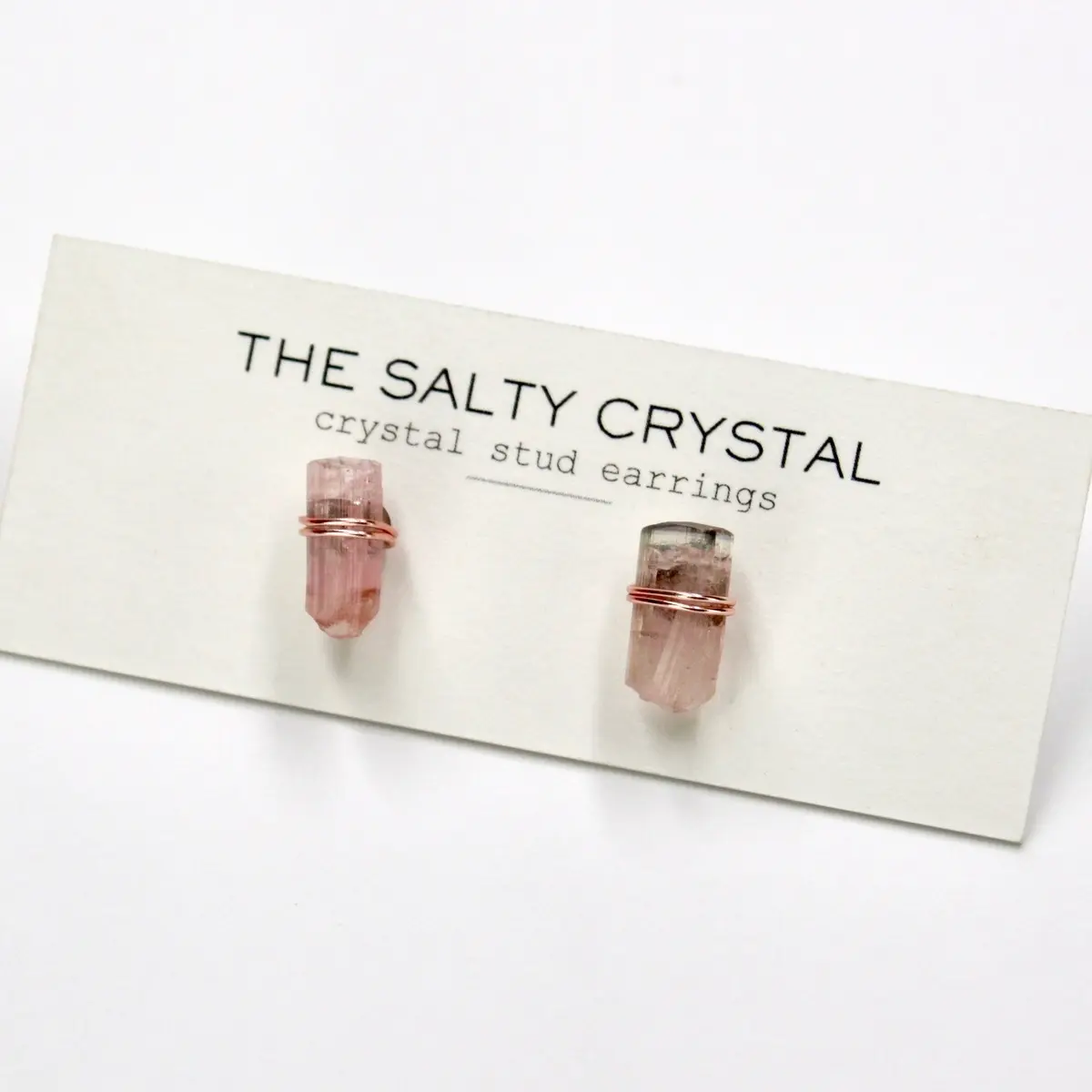 Pink Tourmaline Crystal Stud Earrings on Hypoallergenic Titanium Posts for Women