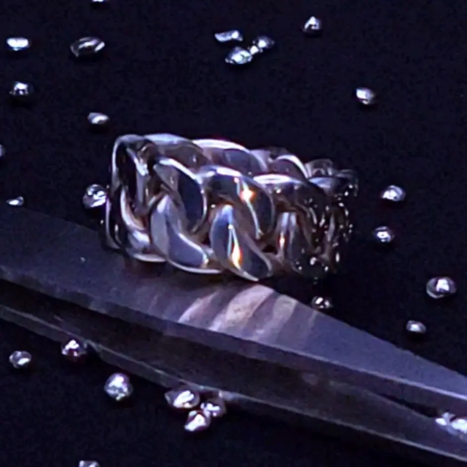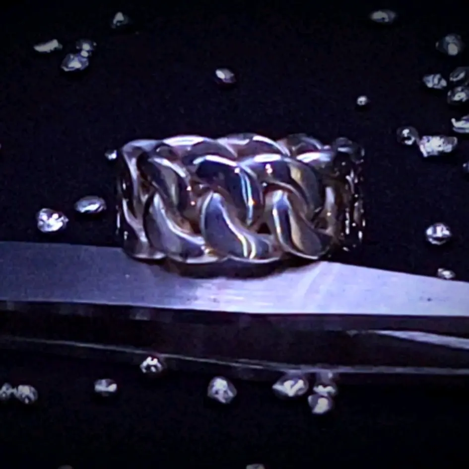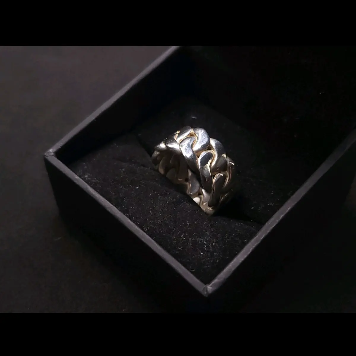 Introducing the Miami Cuban Link Ring, a Solid Silver 925 ring that is both fashionable and eye-catching. This handmade ring is made to order and takes 1-2 weeks to manufacture and ship. The pictures and videos provided are unedited, so what you see is what you get! The show model weighs 16 grams in 925 silver on a size 10.5 ring, though weight varies depending on the size of the desired order.