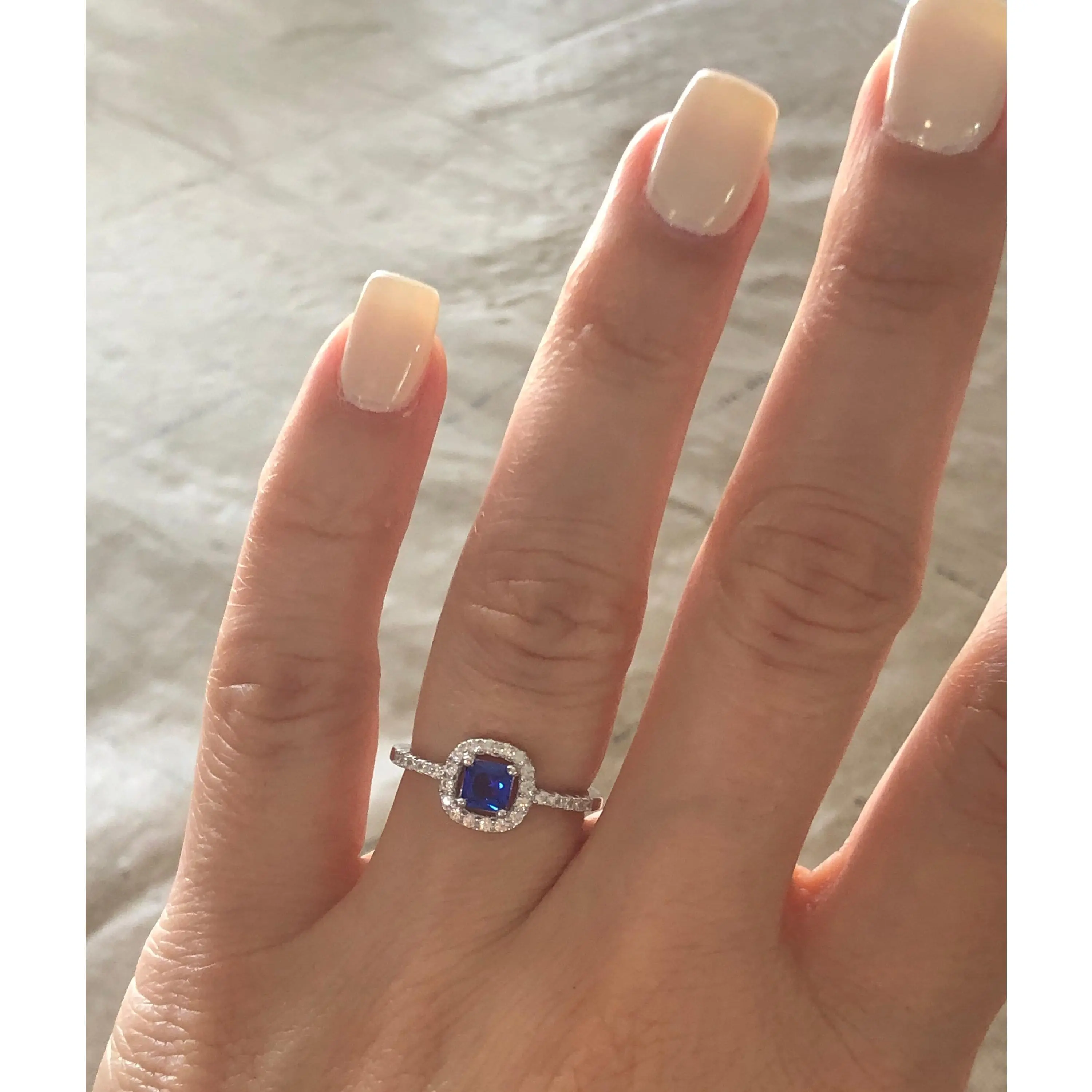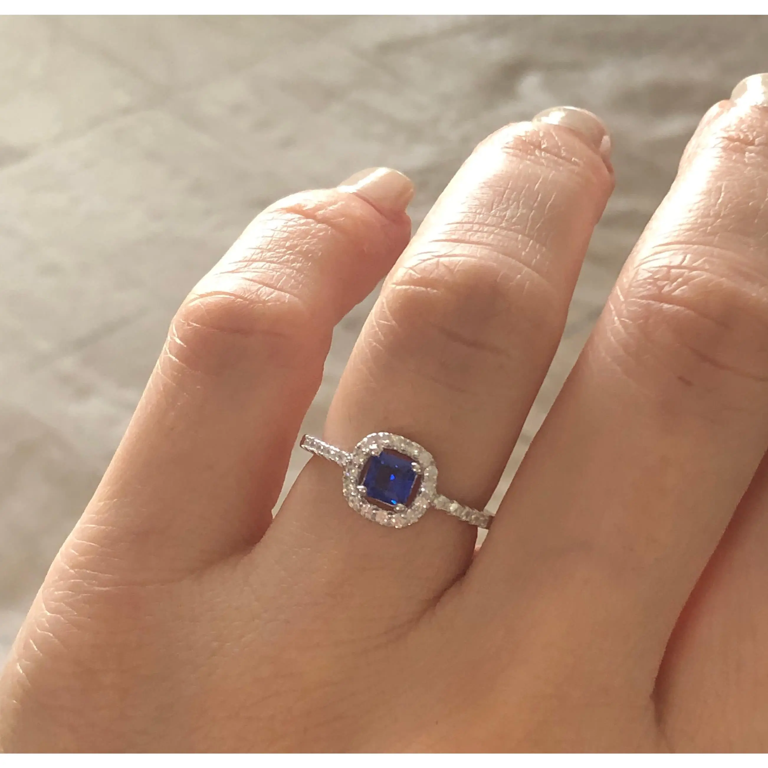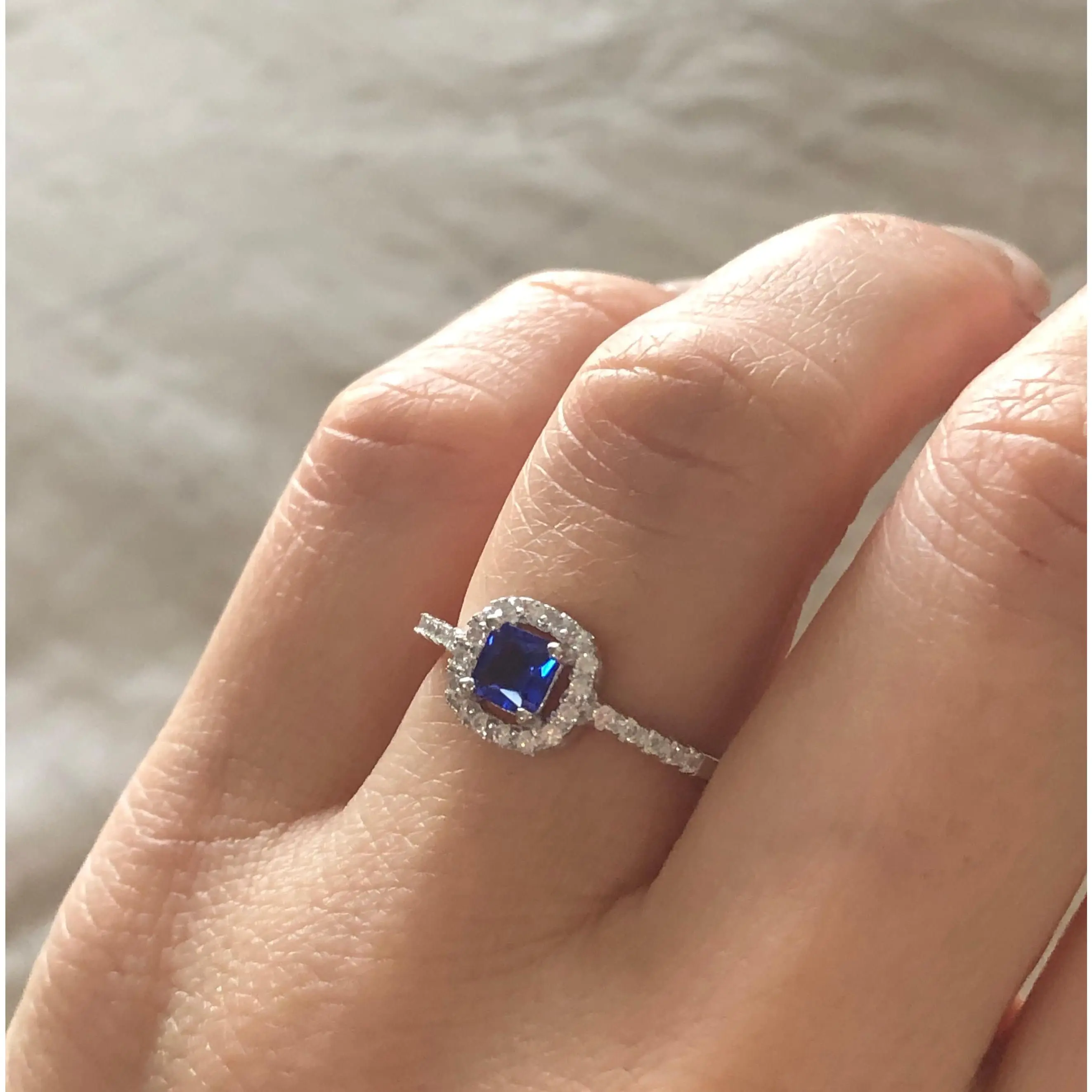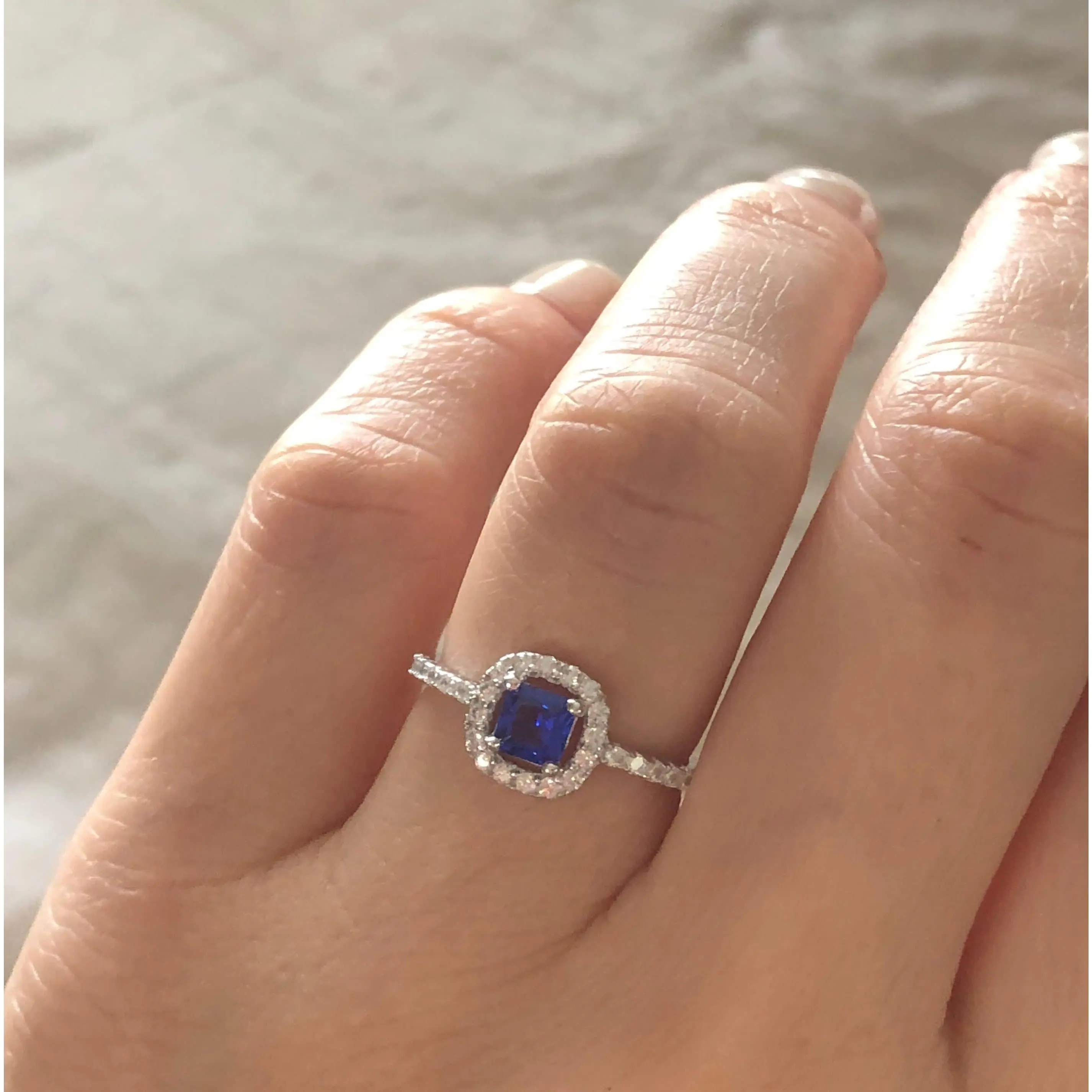 Our sterling silver rings are dipped in rhodium, to give them a lustrous white gold appearance, and to prevent discoloring and tarnish. Our commitment is to provide you with a high-quality piece of jewelry that you can wear forever.
