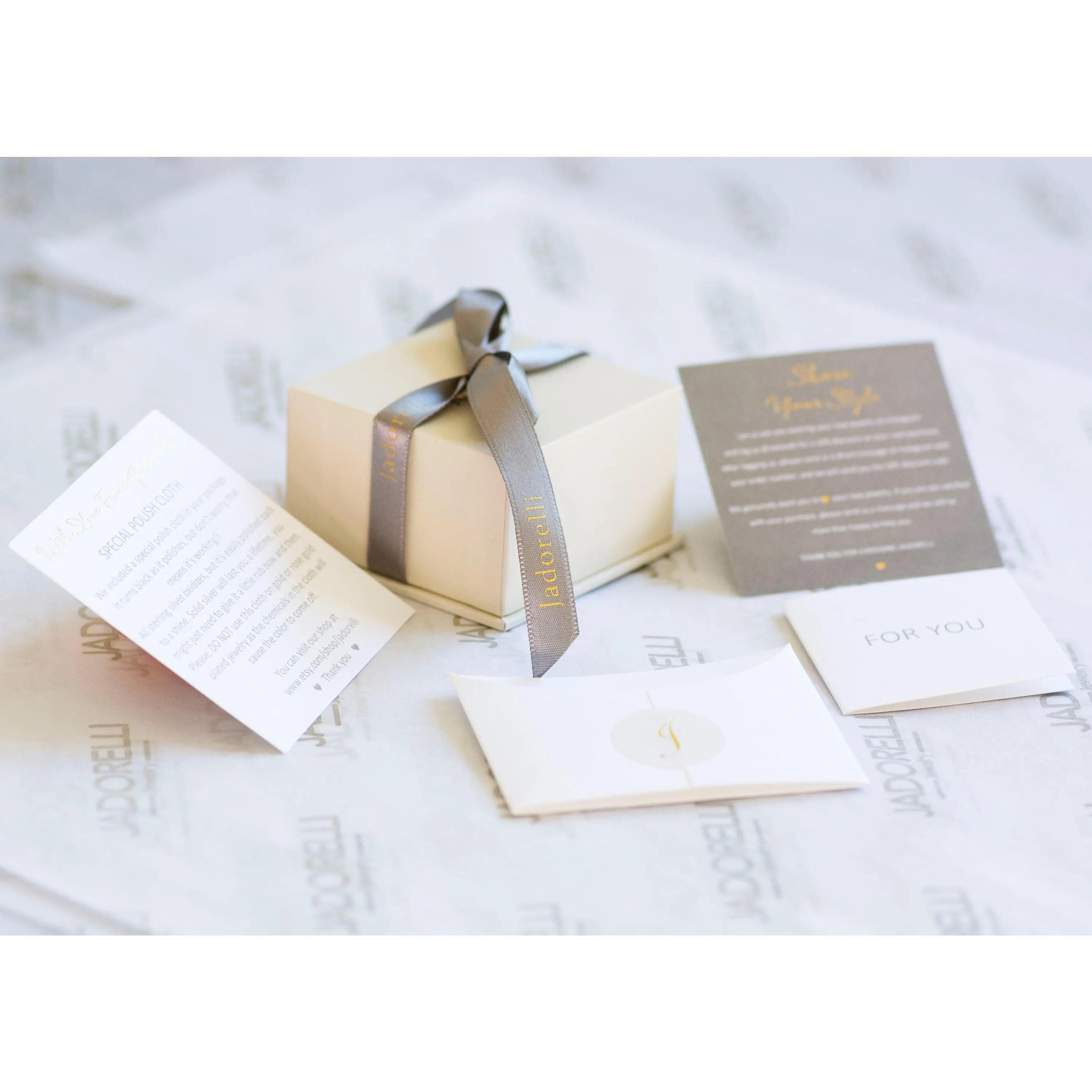 This ring will arrive in a luxury gift box, accompanied by a blank card, care instructions, and a jewelry cleaning cloth.