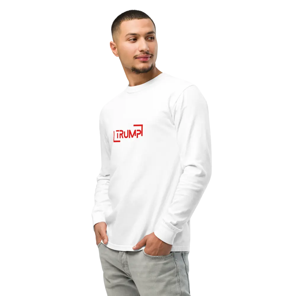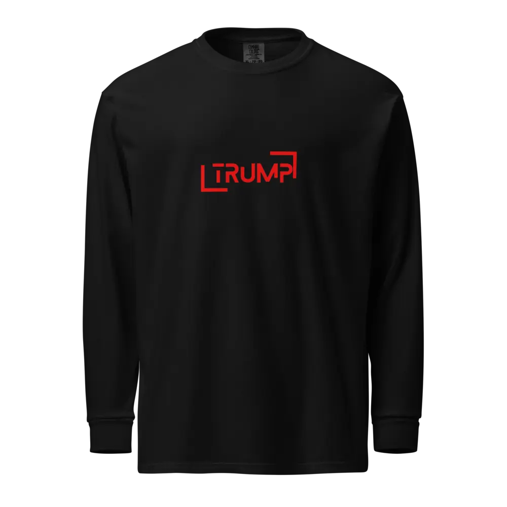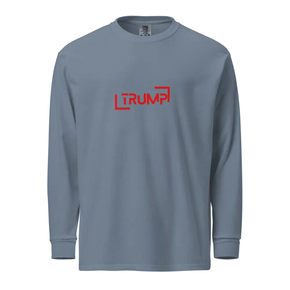 Make a bold statement with our Trump Typography Heavyweight Long-Sleeve Shirt, designed for both men and women. Crafted from 100% premium cotton, this shirt offers a comfortable yet durable feel, perfect for showcasing your style with confidence. The heavyweight fabric ensures that this top stands up to everyday wear while maintaining its shape and softness. Enjoy ultimate comfort with this unisex garment-dyed shirt, crafted from durable heavyweight fabric and dyed for a lived-in look. The dyeing technique ensures the shirt is pre-shrunk to maintain its shape no matter how many times you wash it.