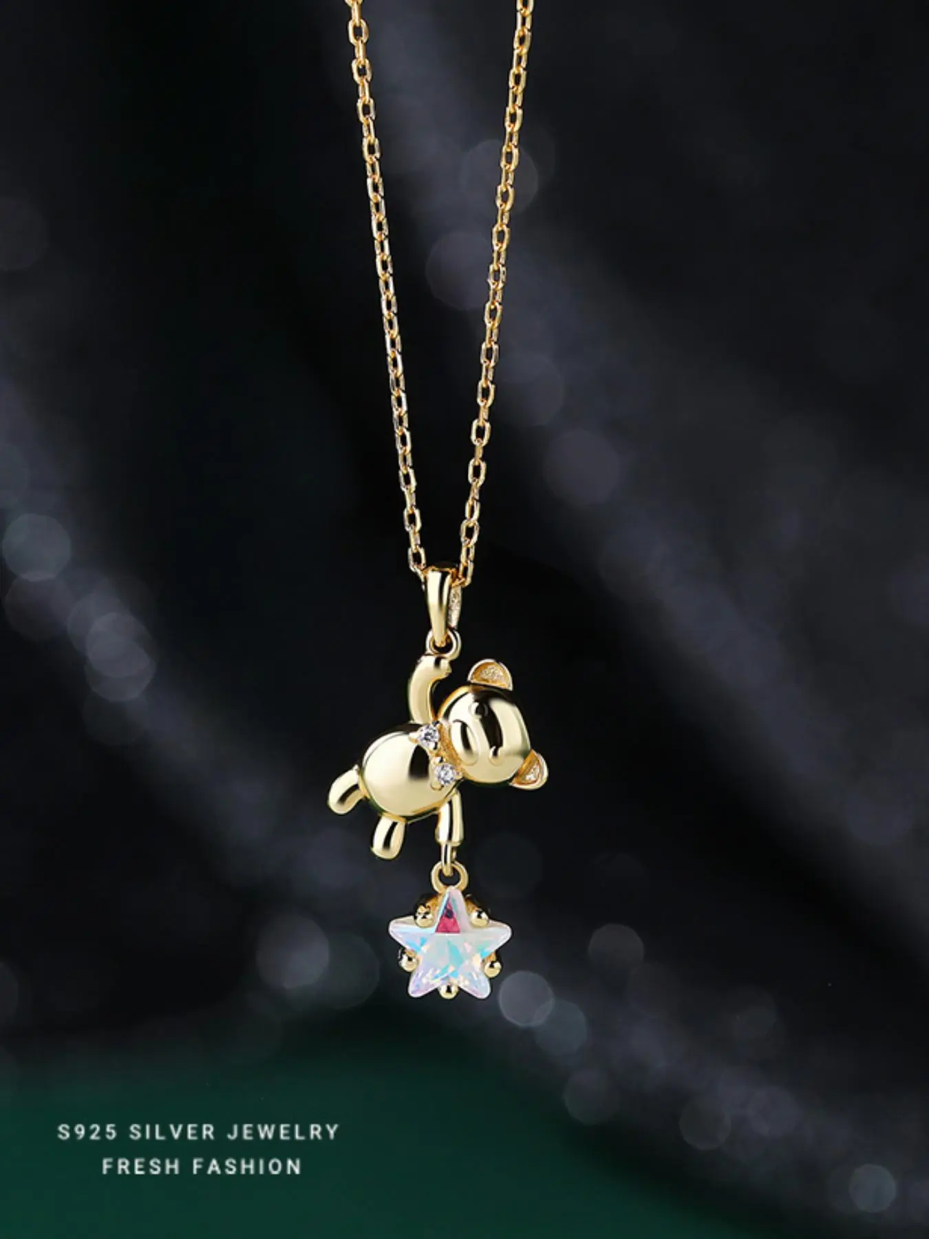 5. S925 Sterling Silver Cute Bear & Star Design Pendant Necklace, Animal Pendant, Fashion Jewelry for Party, Daily Decor, Trendy All-match & Exquisite Jewelry for Birthday Gift