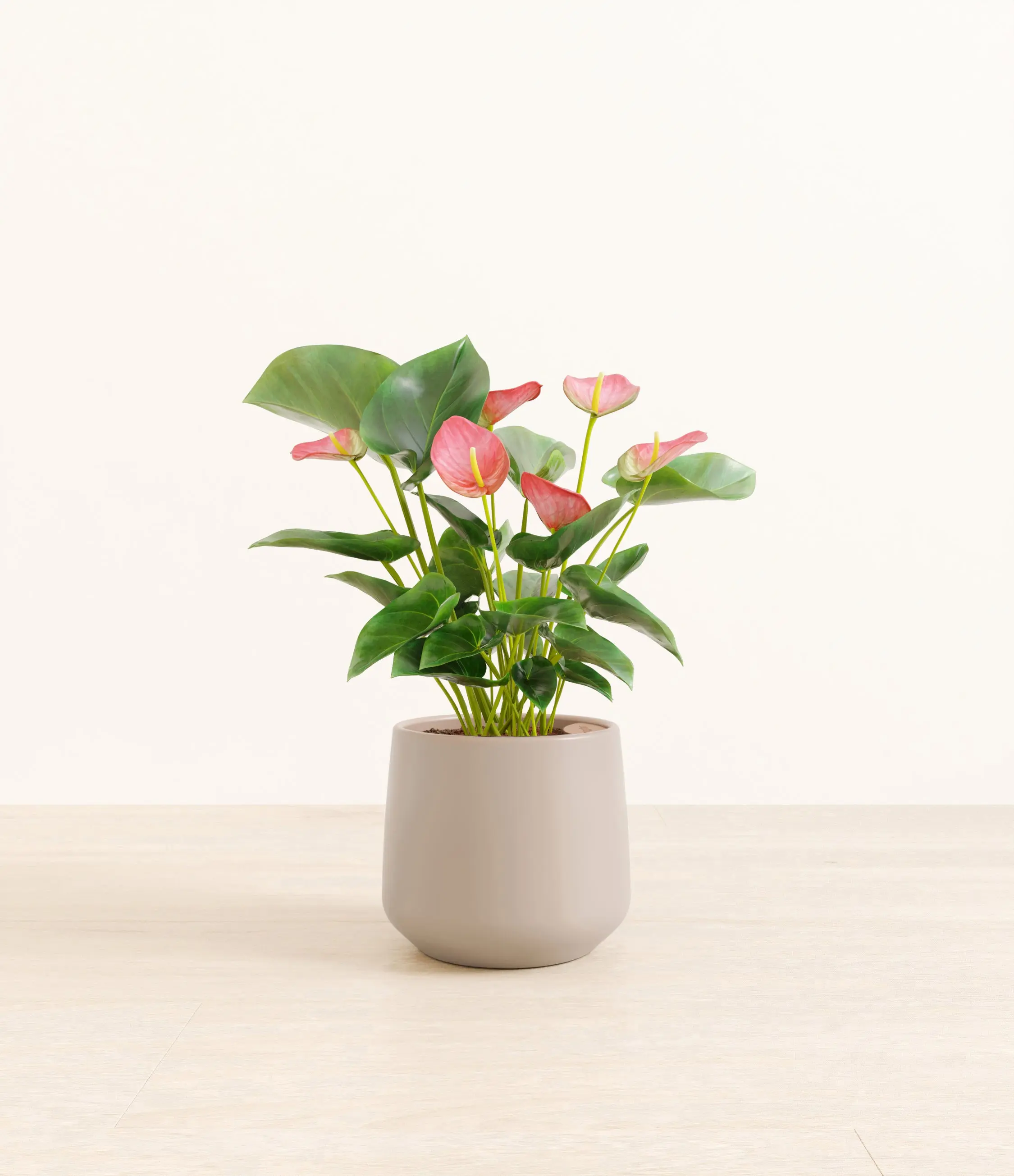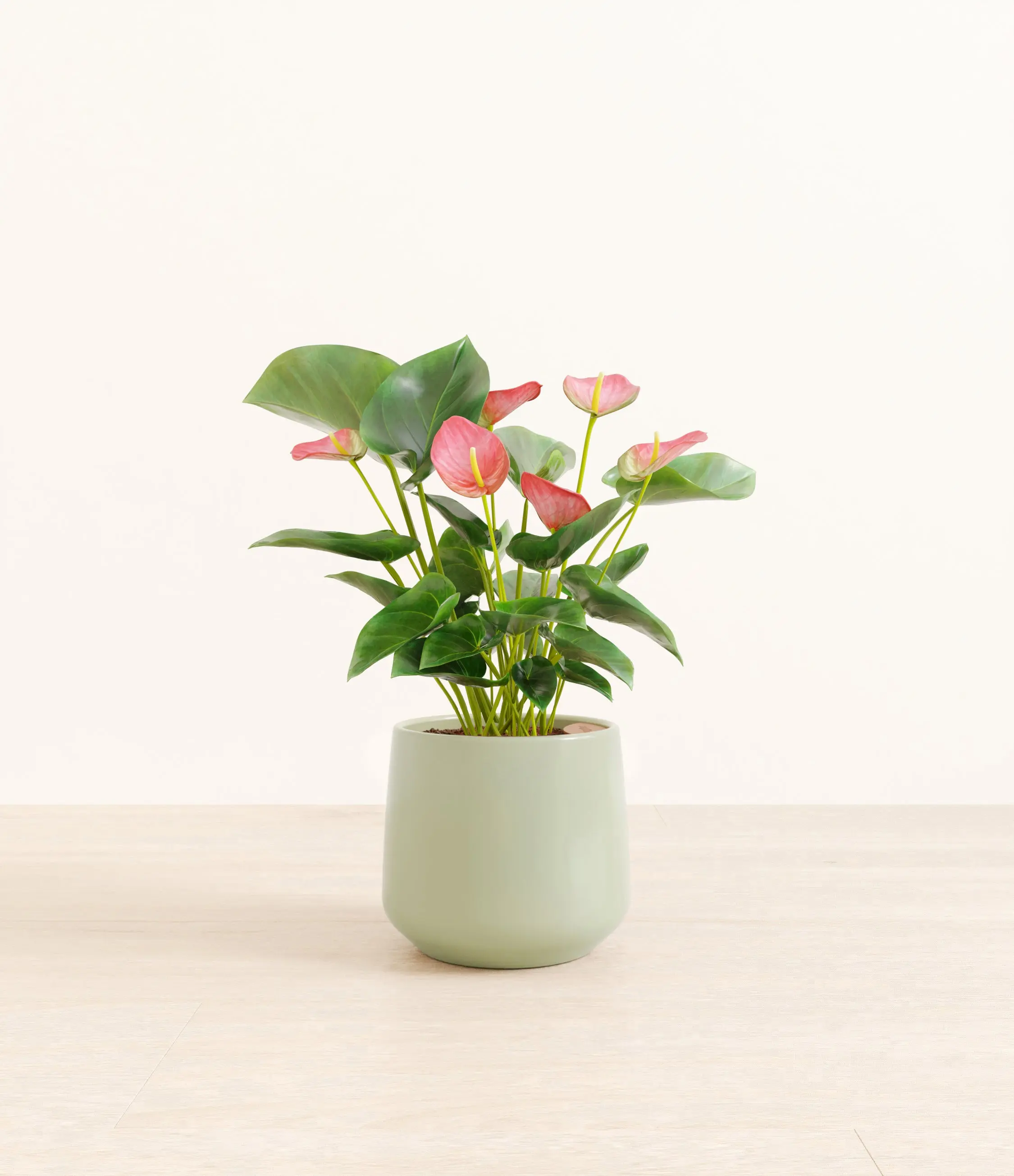 Native to the Americas and Caribbeans, this tropical evergreen beauty brings out the best and brightest in any space it inhabits. The colorful heart-shaped waxy leaves, called spathes, act as protectors for its straight spike, called spadix, where very small flowers grow in its bloom. As the plant matures, bloom colors may naturally vary or evolve, reflecting its dynamic beauty. Thanks to its long-lived, heart-opening charm, Anthurium is the quintessential symbol of generosity and kindness, making it a perfect gift for those you love the most. It is cherished for its long blooms, lasting anywhere from eight to twelve weeks.