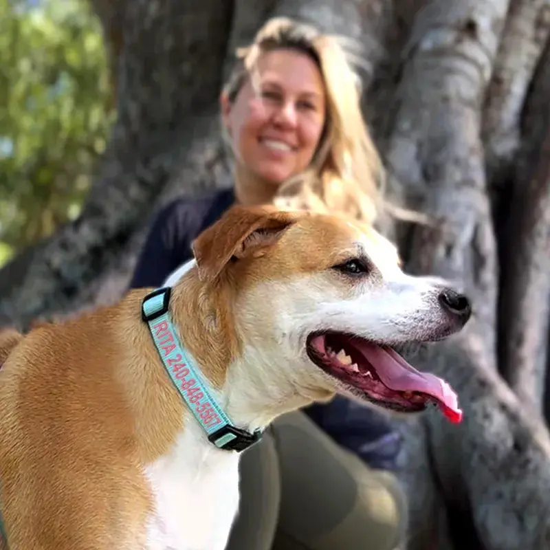 Easily identify your dogs with our personalized solid dog collar offers both style and comfort to your dog. Designed with a fully adjustable fit, D-ring for your chosen Pawtitas leash, and a plastic ring for ID tags, and charms. You can personalize this dog collar with your dog's name and your phone number and even select different thread colors to match your dog's unique style.