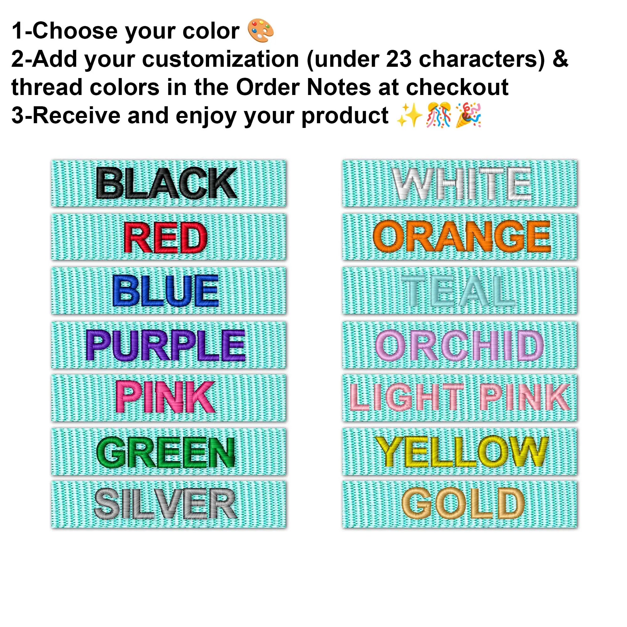 Our carefully crafted personalized dog collar has been tested for it's tensile strength for maximum durability. Before anything else, please don't forget to measure dog's neck for a good fit. When wearing the collar on your dog, gently tighten the collar straps until no more than two finger space can create a comfortable fit.