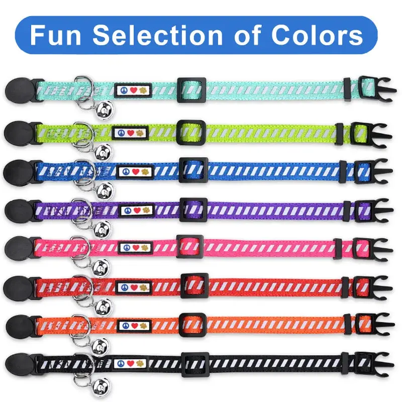 ERGONOMICALLY DESIGNED: Pawtitas Personalized Cat Collar, is designed to focus on your cat’s comfortability and needs.HIGH-QUALITY MATERIAL: This personalized cat collar is specifically designed with High-grade and High-quality material that has been proven and tested for longevity and aesthetics.GREAT COLOR SELECTION: You may use your creativity and select from the variety of colors that we have. This will spark your beautiful ideas and choose what’s a perfect look for your kitty.REFLECTIVE PROPERTIES: The Pawtitas reflective cat collar is designed to reflect ambient light in extremely low light conditions, providing maximum visibility when needed the most with your reflective cat collars