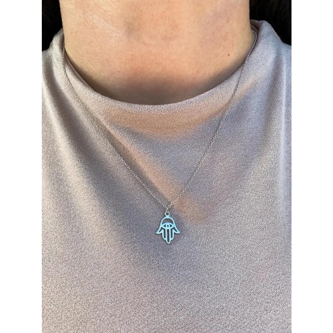 Sterling Silver Blue Opal Hamsa Necklace