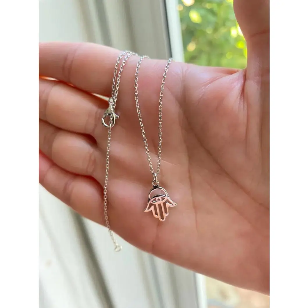 PRODUCT DESCRIPTION -Sterling silver 925 -Hamsa dimensions: 12mm x 12mm - Lobster clasp -Chain length: 16"plus 2" extension