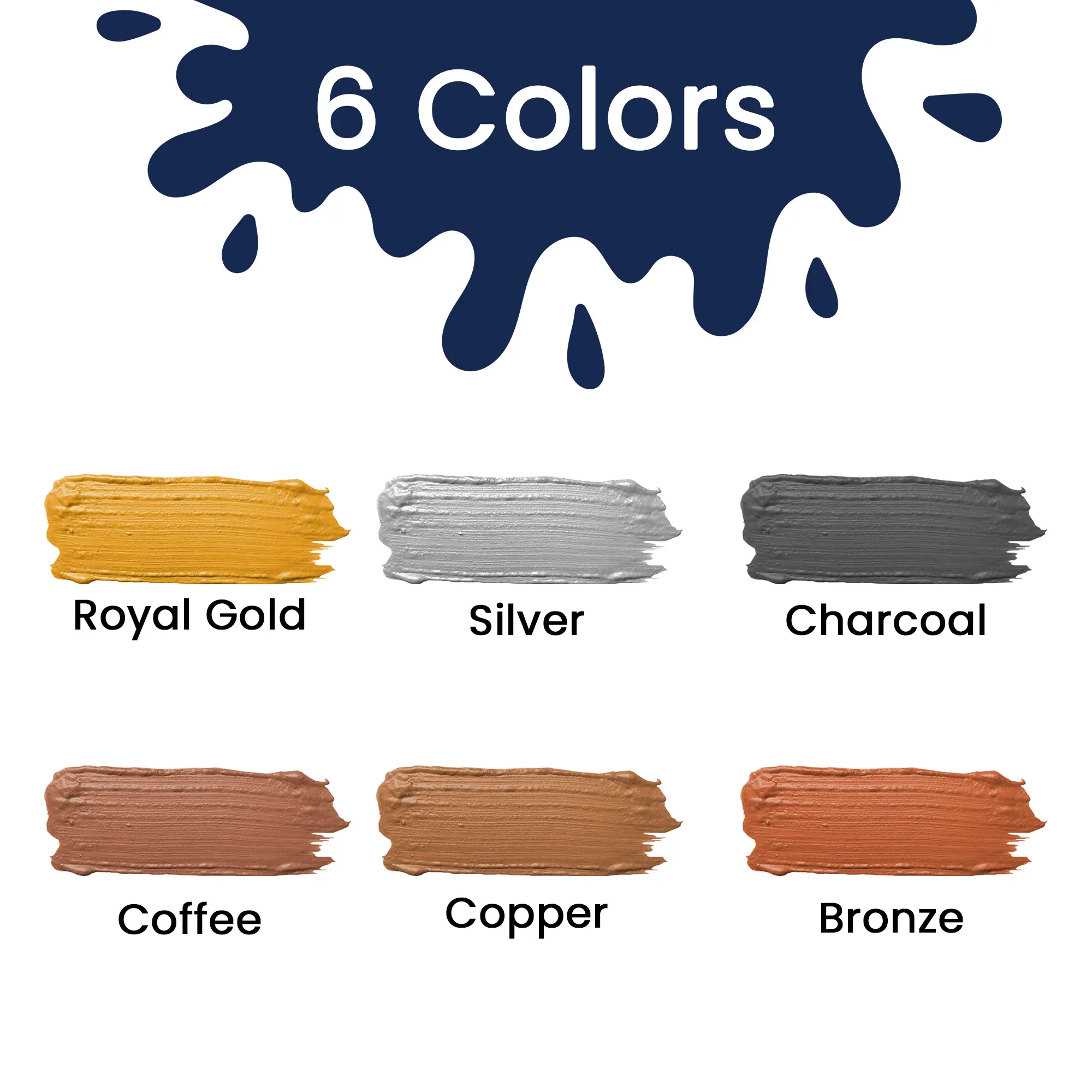 ·Dazzling Pearlescent Shades: This set features six pearlescent colors, each with a subtle metallic sheen that catches the light beautifully. The colors include Copper, Charcoal, Bronze, Royal Gold, Silver, and Coffee. Ideal for creating elegant, eye-catching designs.