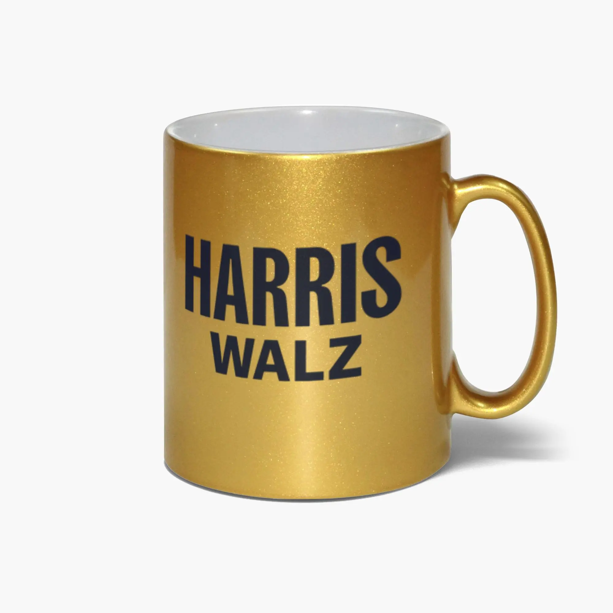 Show your support for the Harris Walz campaign with this amazing, metallic mug. Made of ceramic and with a white interior, it's perfect for home and office use. Display your commitment to the campaign and spark conversations with this eye-catching mug.