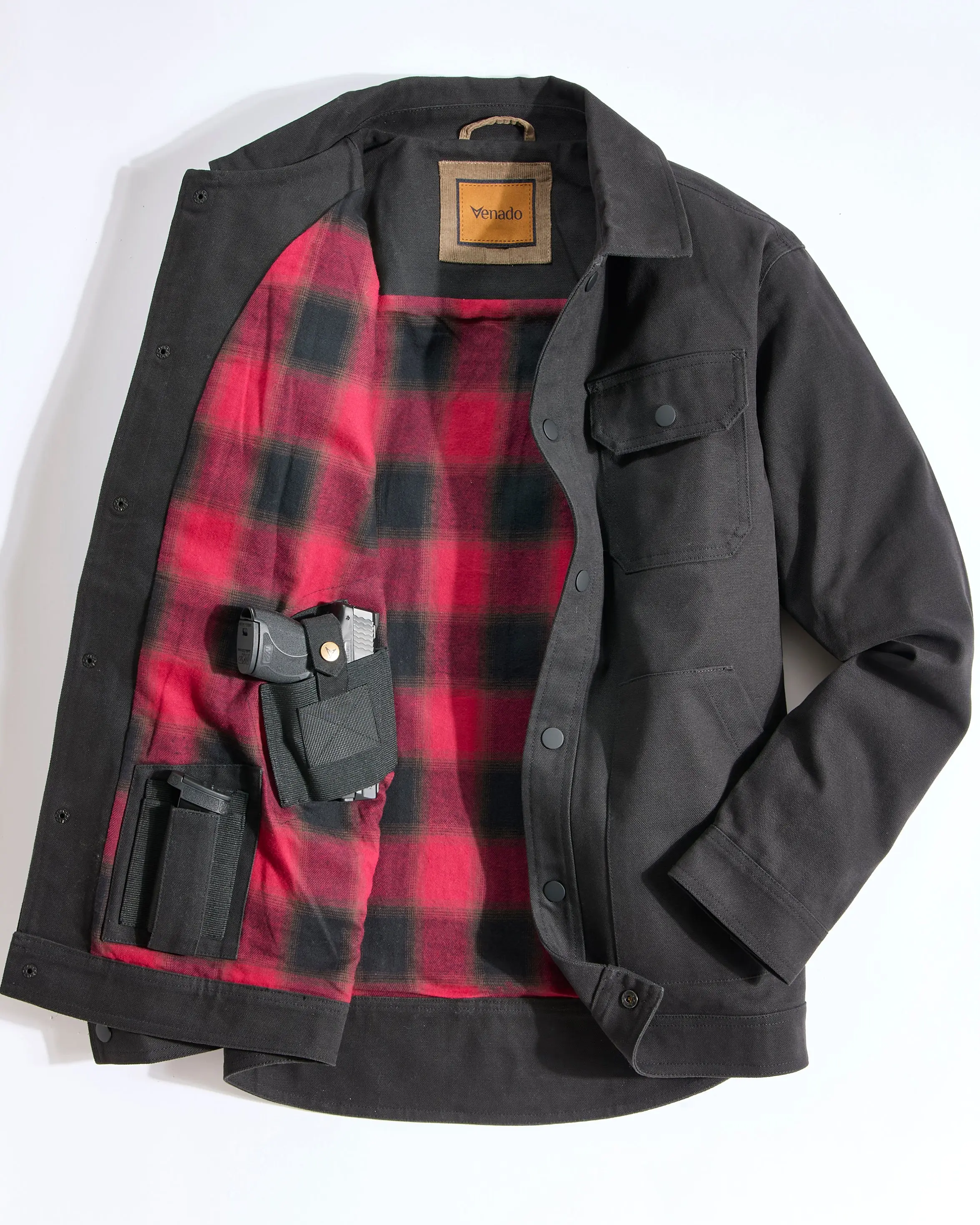 Rugged 100% cotton canvas shell with warm, breathable flannel lining and polyfill insulation—lightweight, but tough enough for the trail or town. Nylon-lined sleeves slide smooth over shirts or base layers, keeping you agile from dawn to dusk.