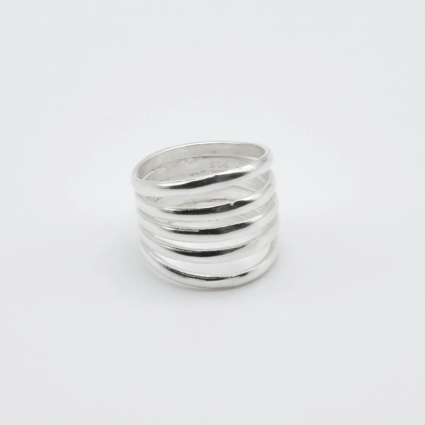 Light and elegant, this contemporary smooth fanned sterling silver ring from Renata Rubio 92.5 is a stunning display of modern craftsmanship. Designed with five individual strands of sterling silver, the bands are expertly soldered together at the base, while the front features a subtle separation between them, creating a graceful fanned effect. A sleek silver finish enhances the ring’s refined and sophisticated look.