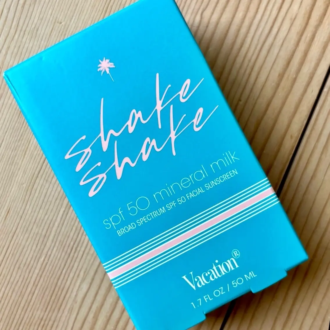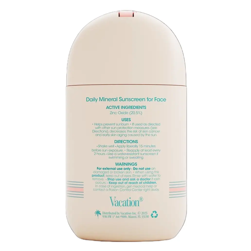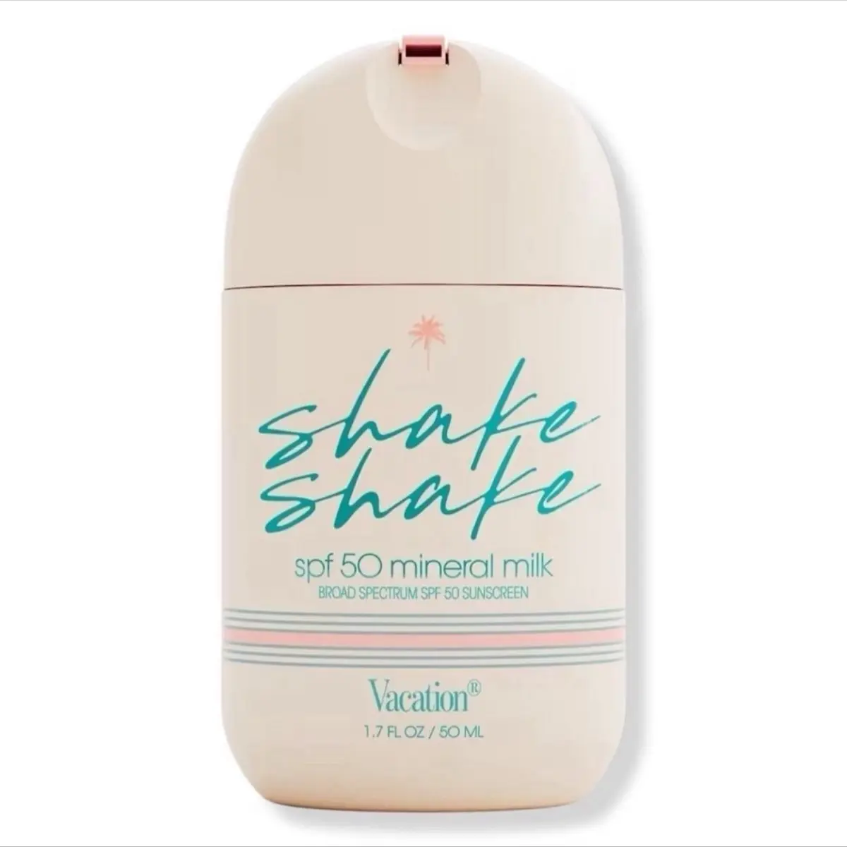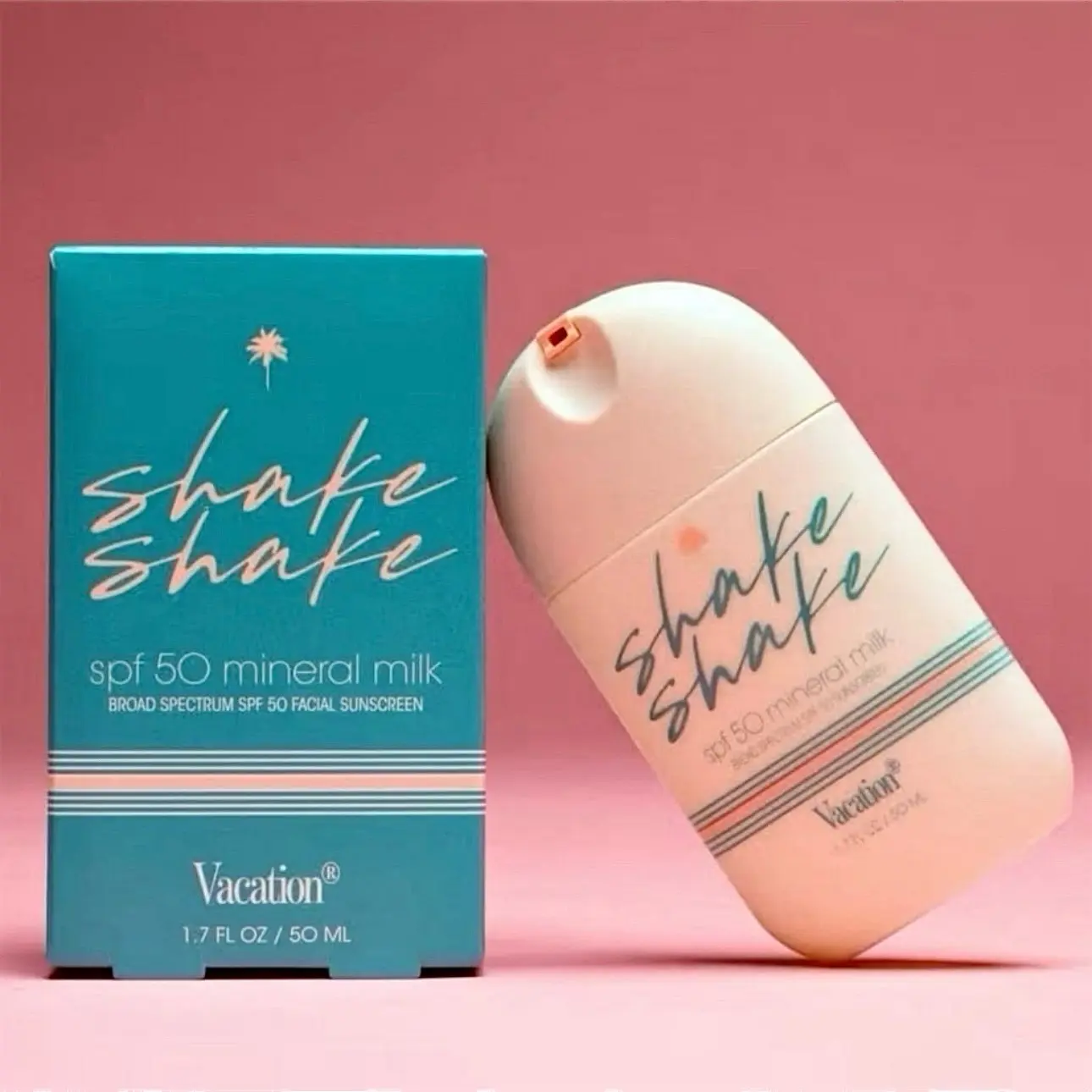Brand new Vacation Shake Shake SPF 50, the mineral face sunscreen that you've been waiting for. This sunscreen is designed to provide you with a lightweight feel and a streak-free application. The shakerball packaging of the product mixes the non-nano zinc formula into a watery-milk texture that you'll look forward to wearing daily.