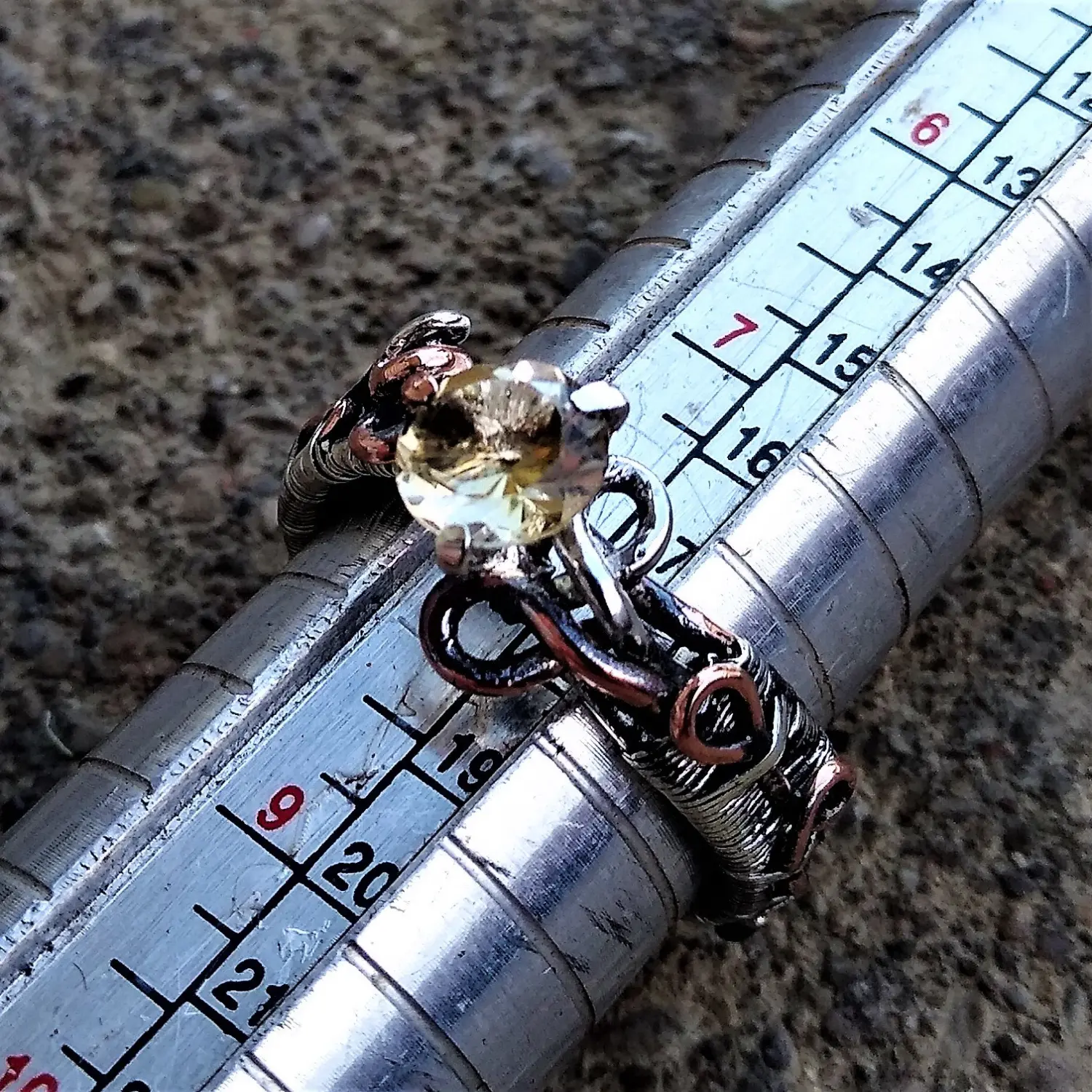 One-of-a-Kind Fairytale Sterling Silver Copper Size 8.5 Citrine November Elven Elvish Genuine Gemstone Fantasy Magical Wire Wrapped Ring