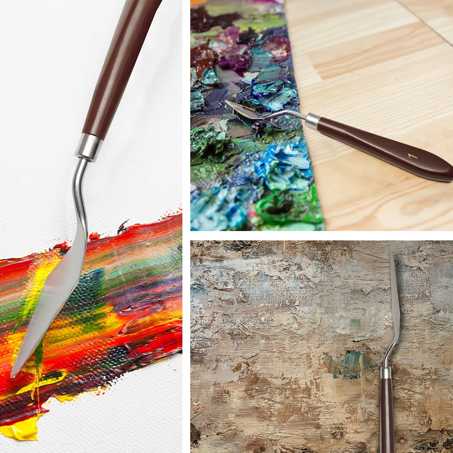 ·Ideal for Various Painting Techniques: Whether you're mixing, spreading, scumbling, scratching, or working on large paintings and murals, these knives are suitable for artists, hobbyists, students, and professionals alike.
