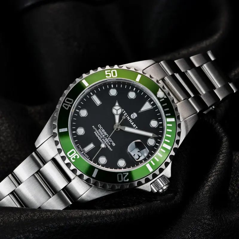Steinhart Ocean 39 GREEN Automatic Men's Diver Watch Green Bezel Black Dial 103-0725