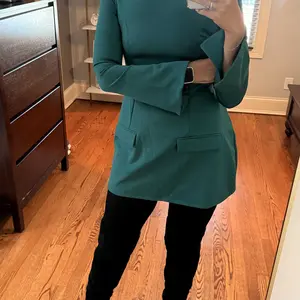 Classy but a very fitted piece. So based on measurements of bust I bought XXL for 38 D cup and it was tight on top. My biggest issue was at the hips as it dipples because I couldn’t fill it out so it’s a perfect piece if you smaller on top and have hips or big bottom. Thick material so very warm