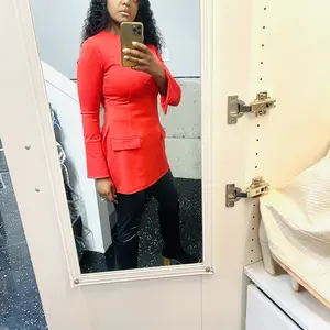 Classy but a very fitted piece. So based on measurements of bust I bought XXL for 38 D cup and it was tight on top. My biggest issue was at the hips as it dipples because I couldn’t fill it out so it’s a perfect piece if you smaller on top and have hips or big bottom. I loved this color a lot.