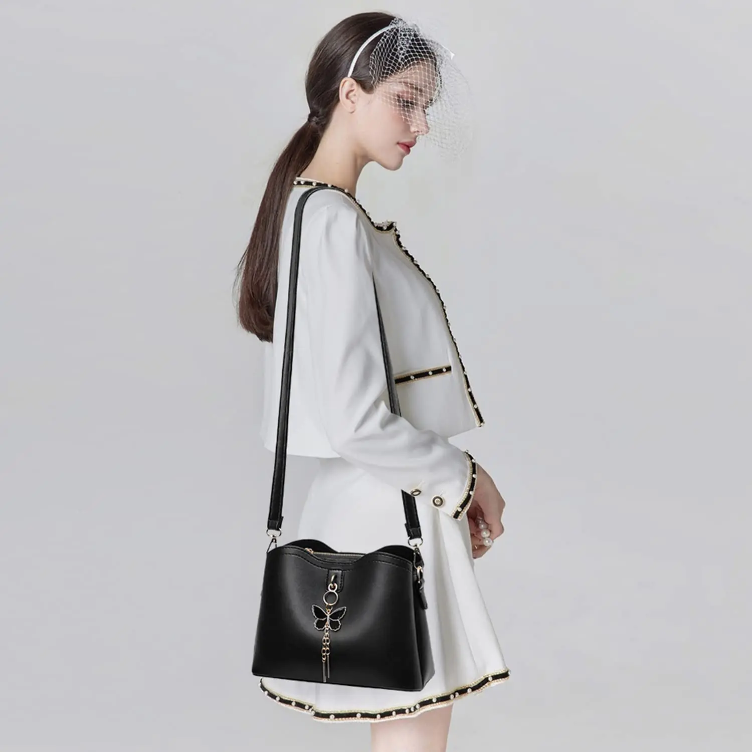 Retro town bucket bag, fashionable leather buckle with strong magnetic clasp.