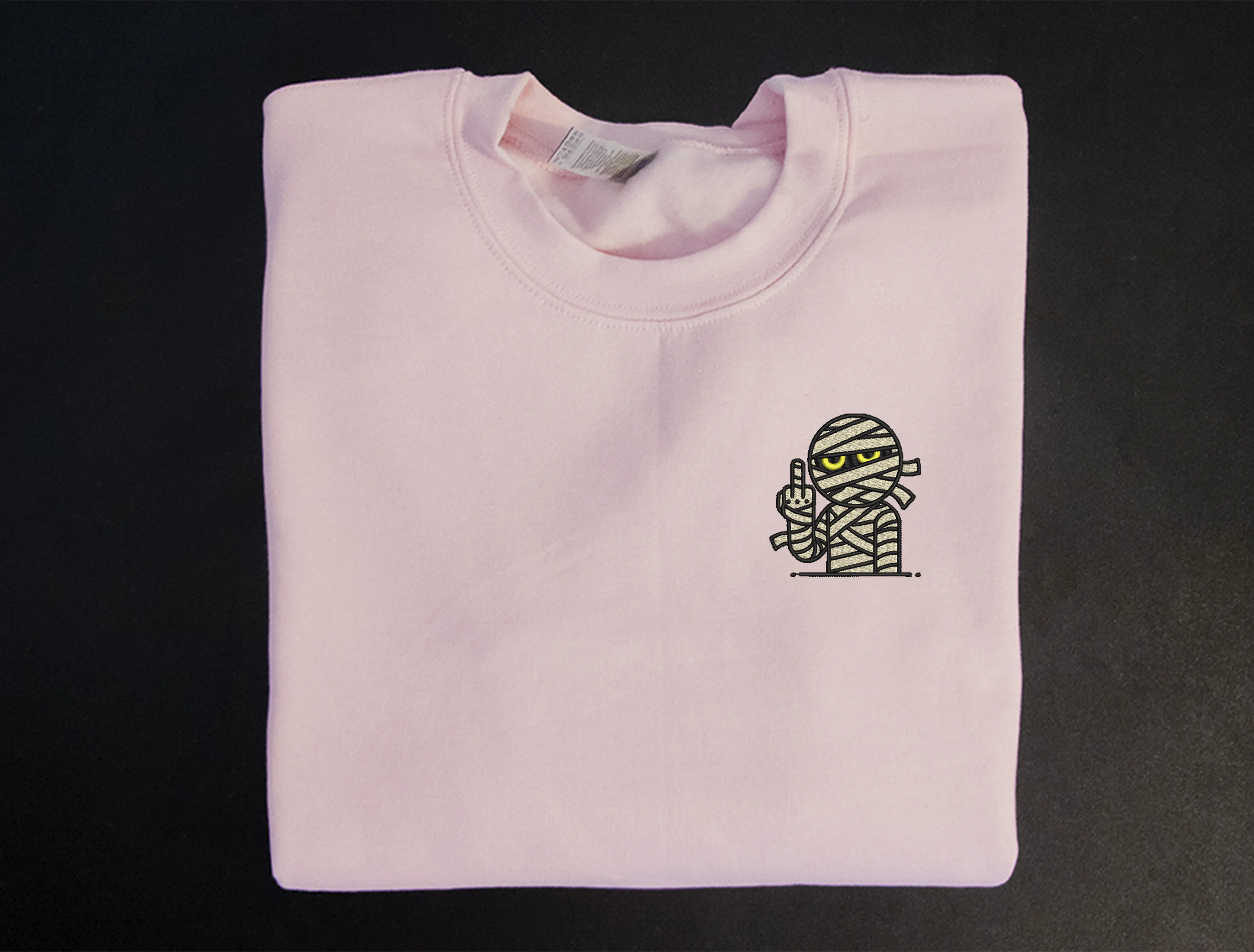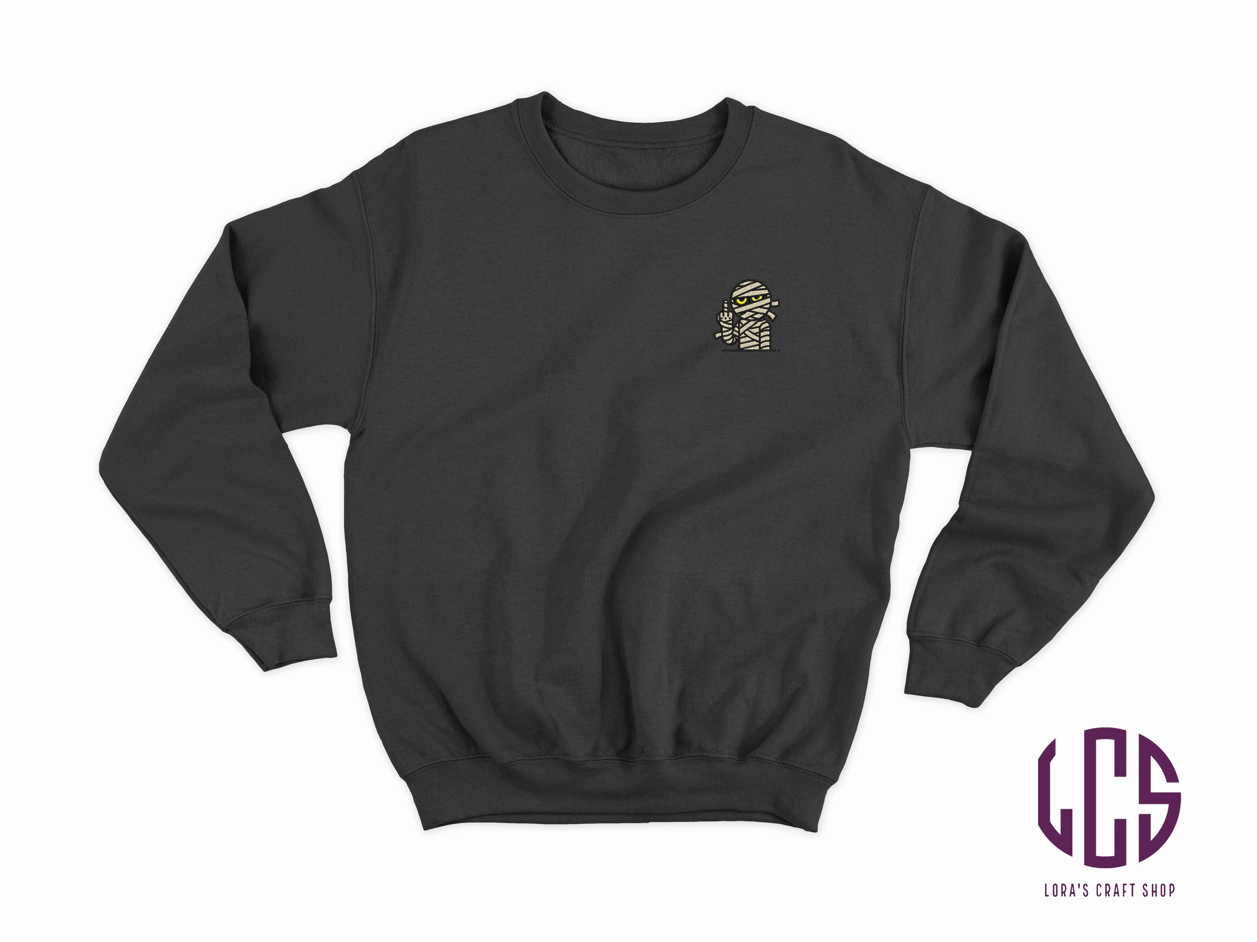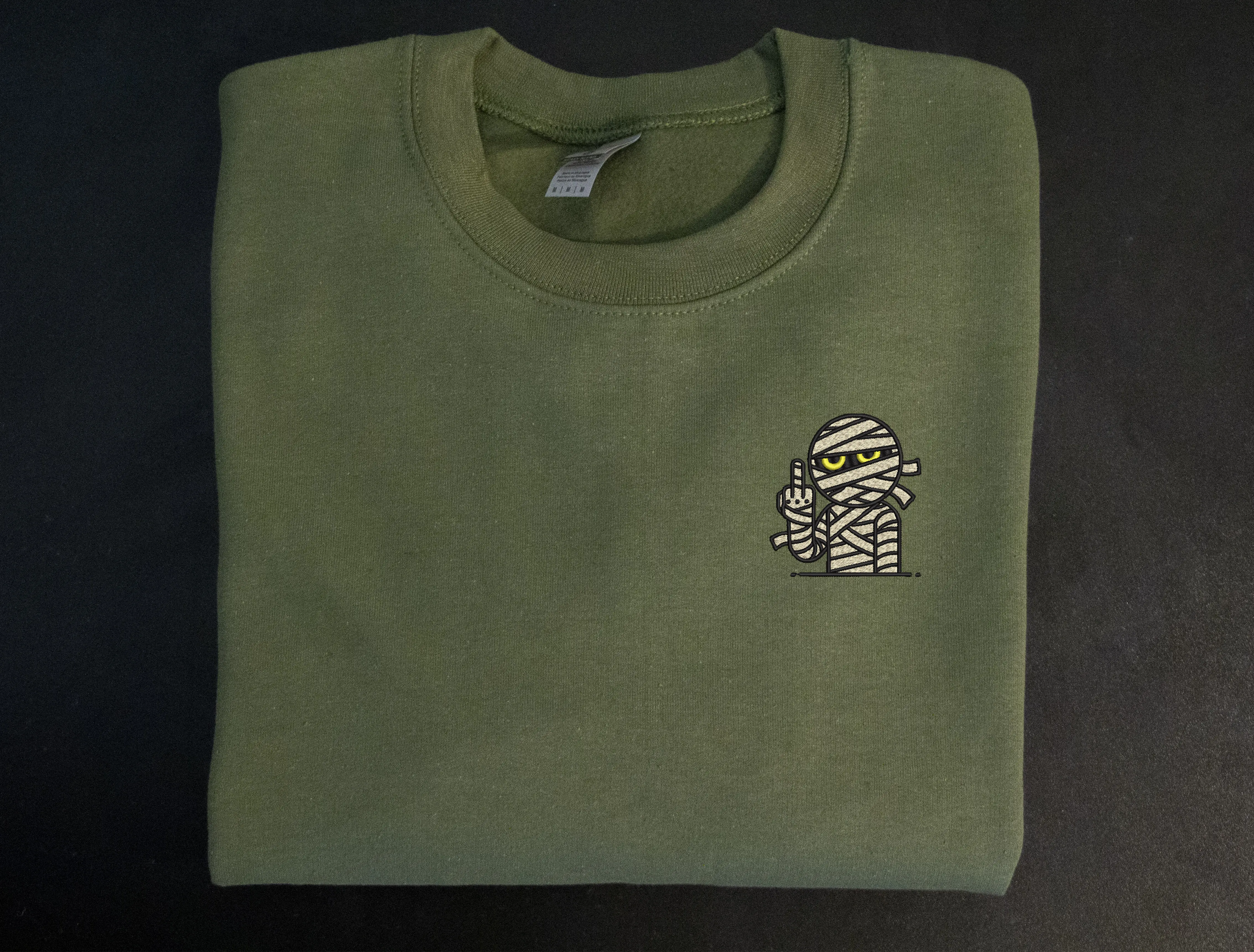 Introducing my unique 'Mummy Giving the Middle Finger' embroidered crewneck sweatshirt!