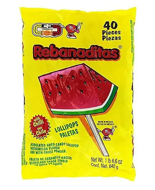 Indulge in the sweet and spicy flavors of Rebanaditas de Sandia! These watermelon-flavored candy slices are a delicious treat that packs a punch.
