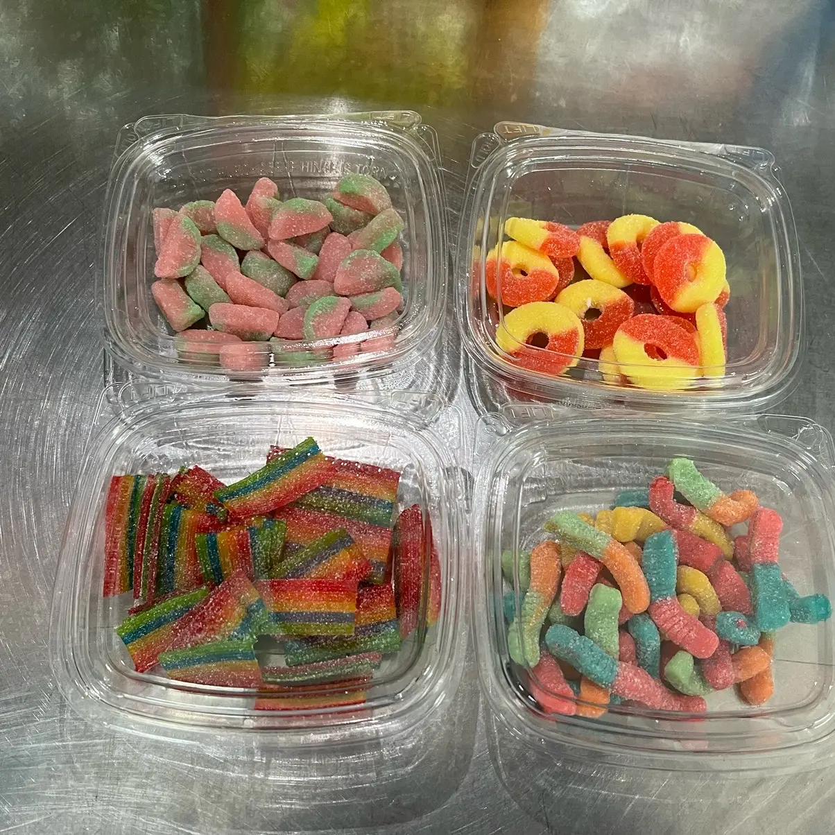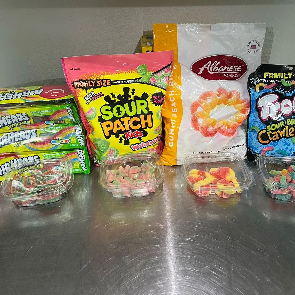 The Trolli worms are a fun and unique addition to the mix, providing a crunchy texture to the candy. The peach rings are a classic favorite that are sweet and tangy, making them a great choice for anyone who loves a balance of sweet and sour. The rainbow strips are a colorful and fun addition to the mix, providing a variety of flavors to the candy.