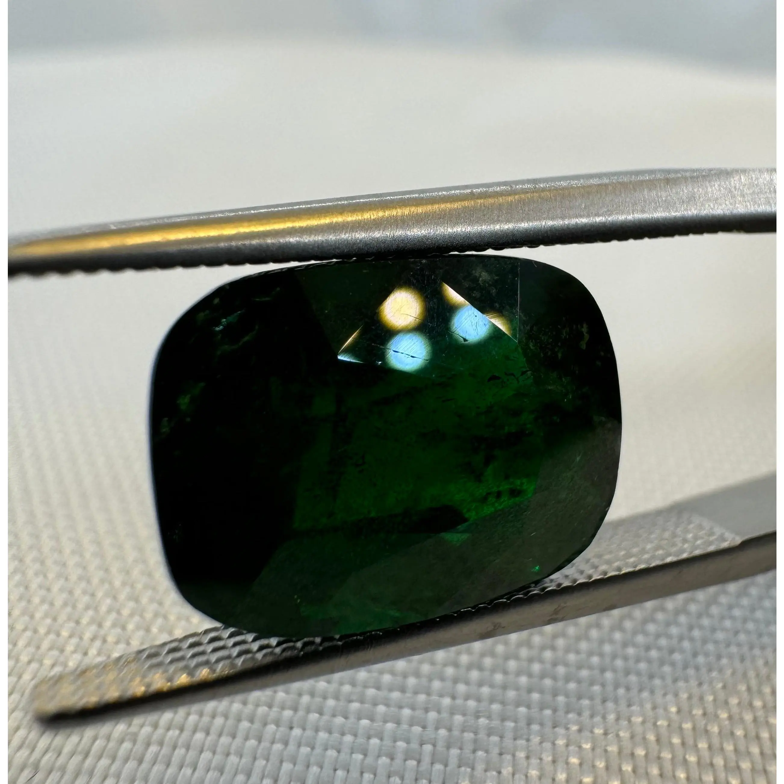 Treatment: NoneWeight: 6.63Dimensions: 12.18 x 9.21 x 7.44 mmShape: Rectangular CushionColor:Green Type: FacetedCertificate: GIA Certified