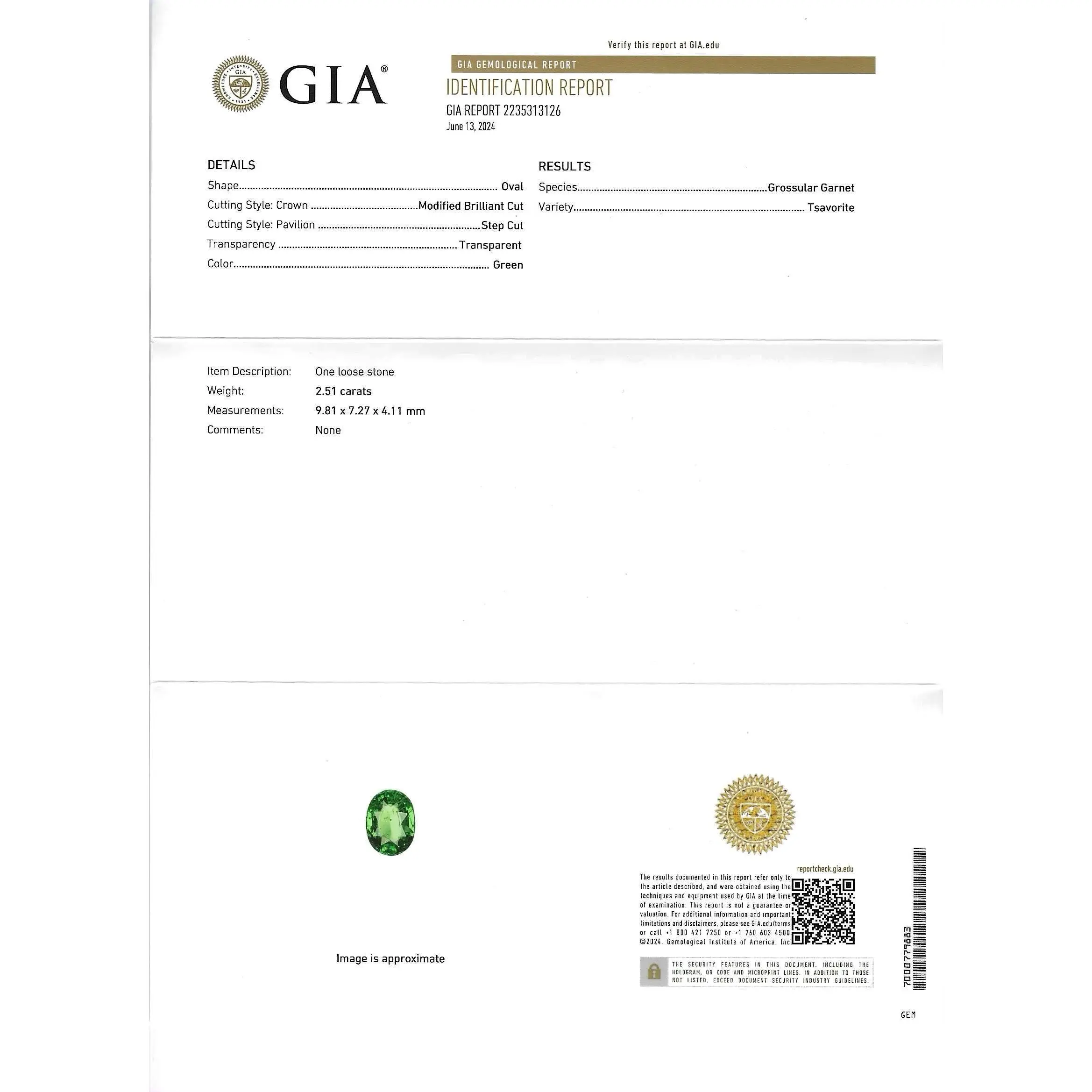 GIA Certified Natural Tsavorite Garnet - 2.51ct - Oval Mixed Cut