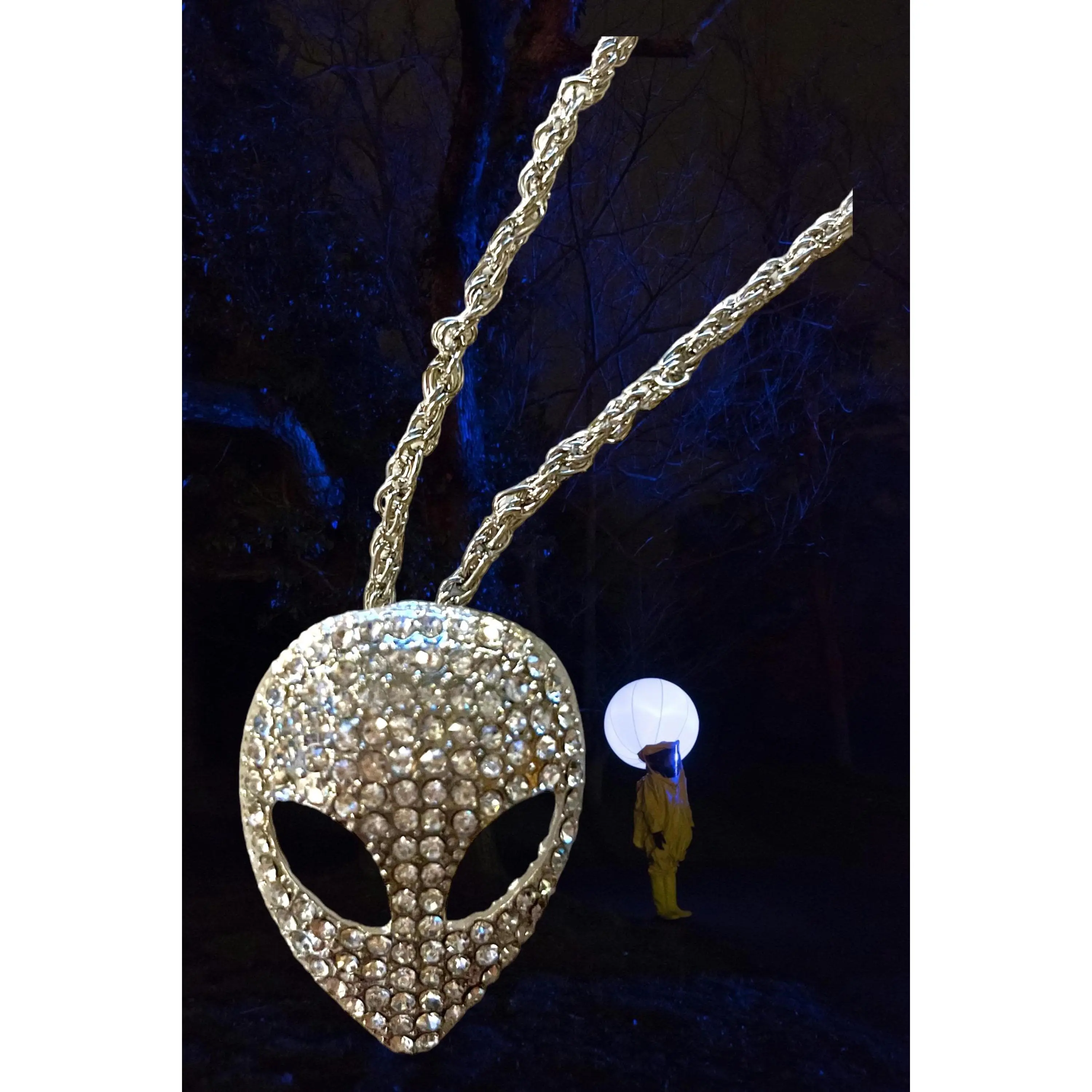 Introducing the Fashion Creative Shiny Rhinestone Alien Pendant Necklace, a unique and eye-catching accessory suitable for both men and women. The necklace features a shiny alien pendant that adds a touch of creativity and uniqueness to the design. The hip hop style of the necklace is perfect for those who want to make a statement with their fashion choices.