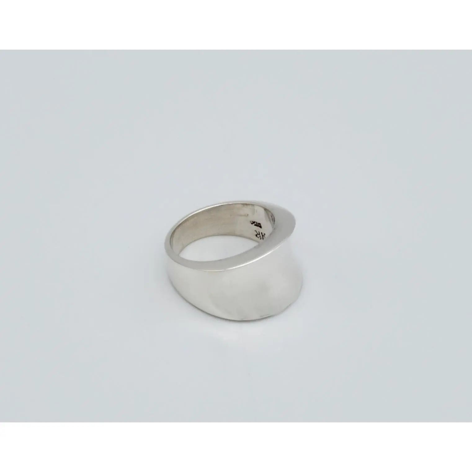 This delightfully comfortable sterling silver ring is a timeless and elegant addition to any jewelry collection. This solid ring has a wide front that measures .5" then tapers to a .2" back. The top of the ring has a concave curve, and its highly polished finish playfully reflects light.