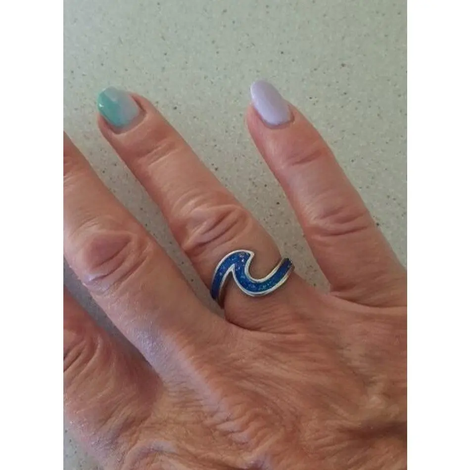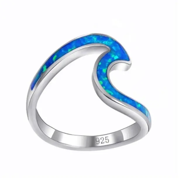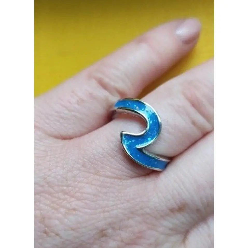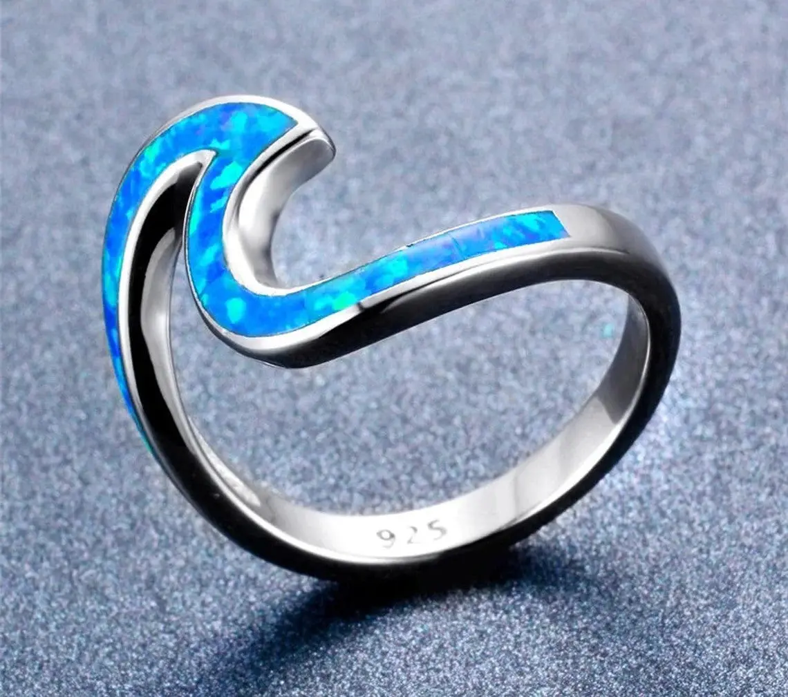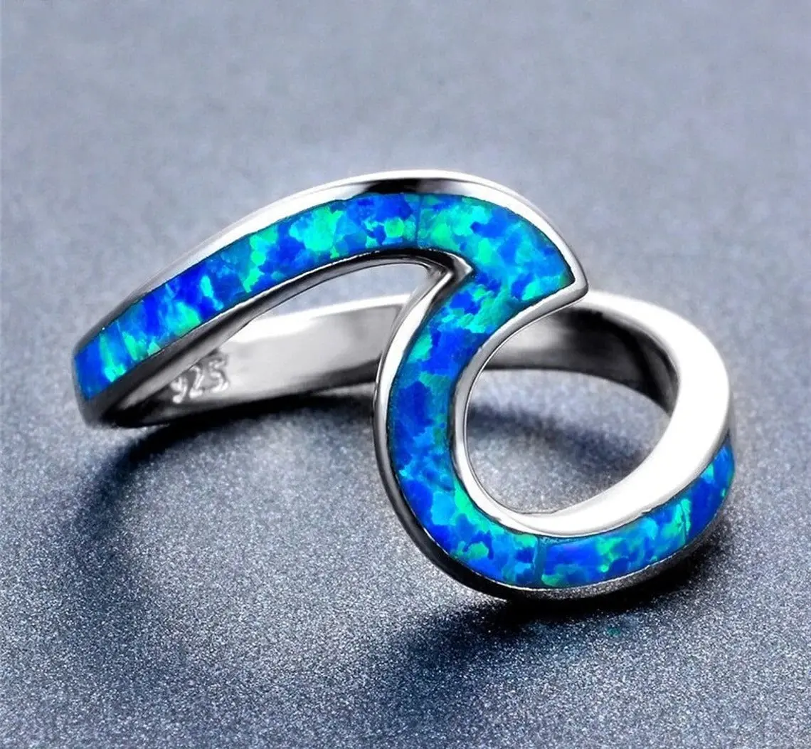 Unique Blue Opal Wave Silver Ring